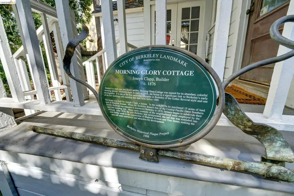 Don’t miss the opportunity to own a property just moments from the University of California, Berkeley. Step back to the early 1900s, where much of this home remains beautifully preserved in its original condition. Known as the Morning Glory House, this historic 1915 residence, designated a City of Berkeley landmark and formally recognized as the Joseph Clapp Cottage, situated just two short blocks from the University of California, Berkeley. The two-level home offers 3 bedrooms and 2.5 baths across 1,602 square feet of living space, along with a detached office featuring French doors that open to views of the grounds. Its iconic architecture is defined by a pair of tall, stick-framed windows in the front gable, complemented by ornate detailing throughout, including high ceilings, decorative plasterwork, intricate wood moldings, and expansive windows that fill the interiors with natural light. Designed with entertaining in mind, the home features two parlors: a formal front parlor for gatherings and a more intimate rear parlor suited for quiet visits, teas, or musical performances. The original kitchen includes a classic vintage stove and an additional cozy breakfast nook. Clawfoot tubs and high-tank toilets enhance the home’s old-world character. Historic features yield a Home Energy Score of 3. For added convenience, tandem parking and a laundry room with washer and dryer. Outside, the yard unfolds into a magical urban retreat, shaded by towering eucalyptus trees. Enjoy a book or your morning coffee from the primary balcony or the rear Savana-style porch. Ideally located in the heart of the city with a Walk Score of 98, the home offers convenient access to shopping, public transit, the Downtown Berkeley BART station, and the diverse dining scene of the renowned “Gourmet Ghetto.” Seize the opportunity to own a timeless piece of Berkeley history!