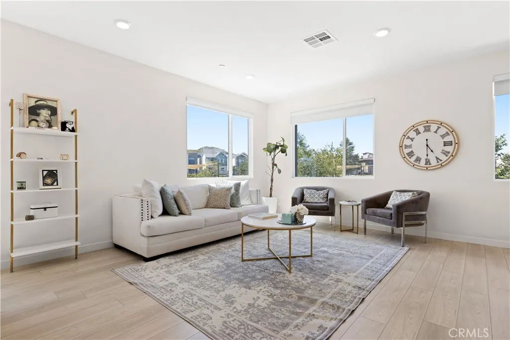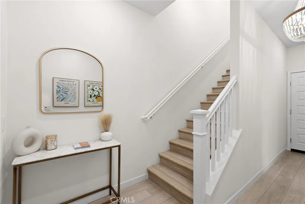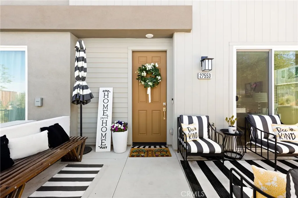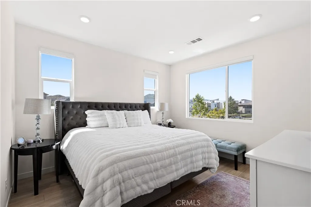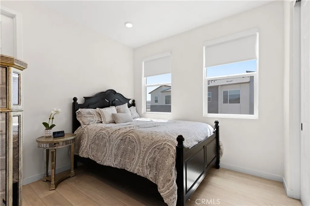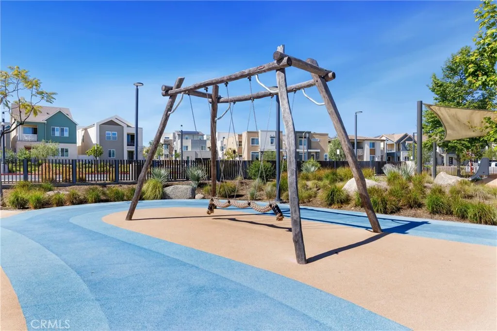 Experience elevated living with serene park VIEWS in this newer end unit townhome, ideally located in the highly sought after FivePoint community. The open concept layout features spacious living and dining areas that flow seamlessly into a chef’s kitchen with premium appliances, modern finishes, and a large walk in pantry. Luxury vinyl plank flooring throughout the home. Upstairs offers three generously sized bedrooms, including a luxurious primary suite with a walk in closet and spa inspired bath featuring a soaking tub, glass enclosed shower, and dual vanities. A first floor bedroom and full bath provide ideal flexibility for guests, a home office, or multigenerational living. Additional highlights include a private gated courtyard, two car garage, fully owned solar, and an electric vehicle charging station. The home also benefits from among the lowest HOA dues in the community, including exterior homeowners insurance. Enjoy resort style amenities including pools, spa, clubhouse, parks, scenic trails, and a weekly farmers market, all within a top rated school district.