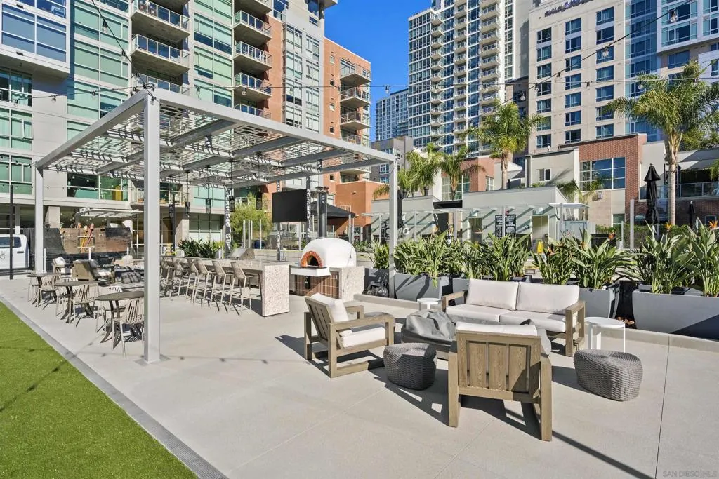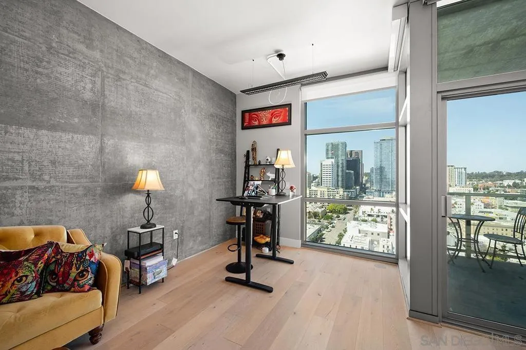 Sleek & modern 1BR/1BA condo on 20th floor of luxury high-rise in East Village. Featuring matte black Fenix cabinets, matte black Dekton counter, black stainless appliances, storage room, in-unit washer & dryer, white oak floors, & motorized shades, including blackouts in BD. Floor-to-ceiling windows fills w/ natural light & balcony w/ city views. Two side-by-side parking spaces. Amenities include pool, gym, concierge, & 24-hour security. Near Petco Park, Gaslamp Quarter, restaurants & bars, w/ convenient freeway access.