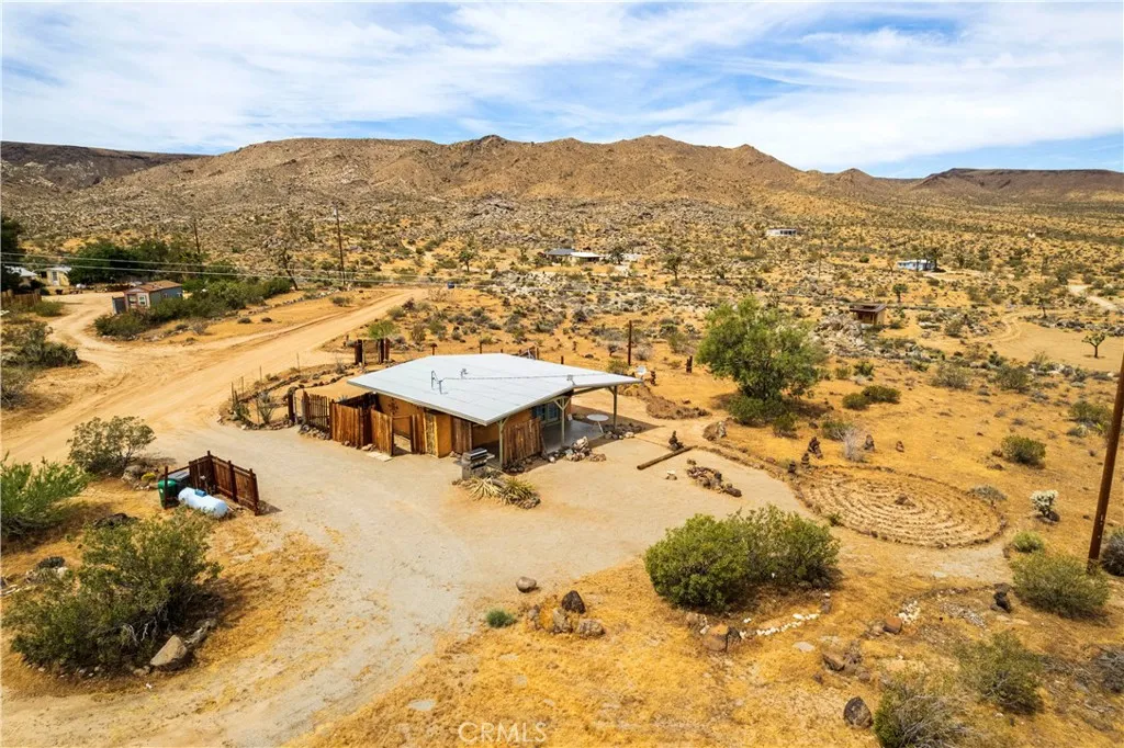 Absolutely charming cabin on five acres! The elevated location will give you panoramic views all around. Features include vaulted wood ceilings, slate floors, custom bath tile work, double French doors with shutters and more! Kitchen has custom sink, brand new butcher block countertops and a propane gas stove. Back of home has a covered patio just perfect for morning coffee enjoying the views. Just behind the home is your very own labyrinth framed by rock cairns. This is the perfect artist retreat! Tax rolls show this home as a single family residence, buyer to verify.