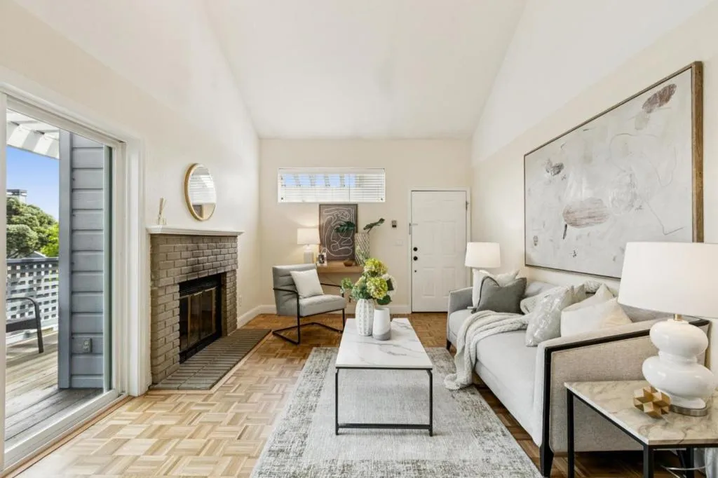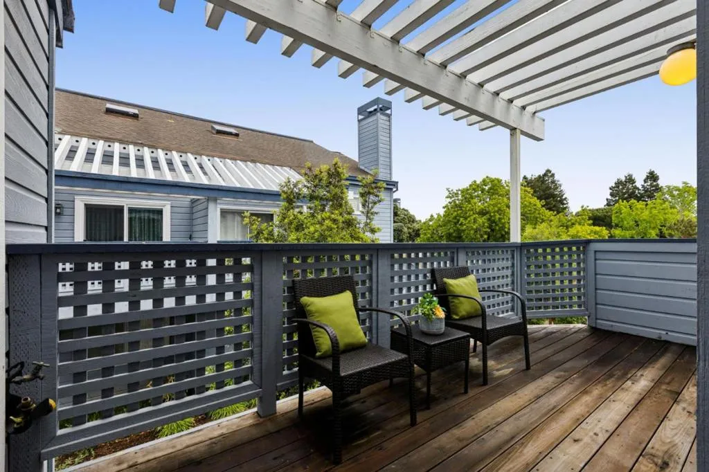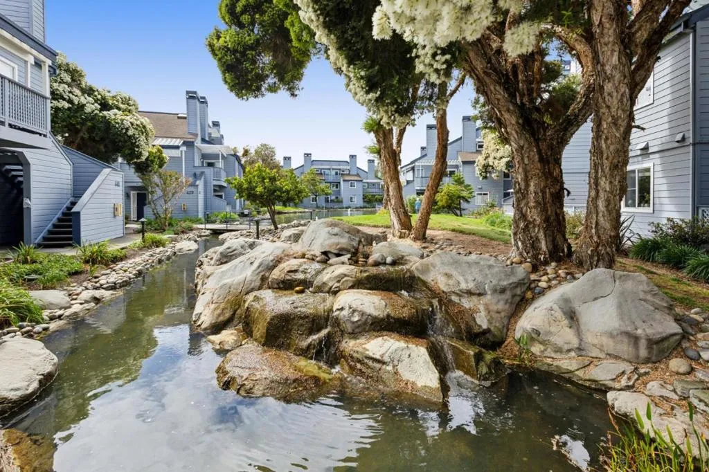 Wonderful new listing rarely available at Peninsula Landing. Three (3) bedrooms, Two (2) baths, just under 1350 sqft on two levels with soaring ceilings, abundant natural light, two lovely balconies, two fireplaces and an upgraded chefs kitchen. The primary bedroom is unexpectedly large with a spa-like en-suite bath, fire place, office nook/sitting area, expansive walk-in closet space as well as amazing natural light. Beautifully refinished hardwood floors. Newly installed carpet upstairs. Closet organization systems throughout. Separate and convenient laundry room. Remodeled Chefs Kitchen with stainless steel appliances and a sitting deck just off the kitchen perfect for BBQs and enjoying the sunshine. One deeded covered parking space and plenty of guest parking. Located in the heart of the Peninsula in Redwood Shores, your new home is near bayside hiking trails, easy commute and caring community. Zoned for highly rated schools in Redwood Shores as well as Carlmont Highschool in Belmont. This is a condo that lives like a single family home. Steps away from lush parks, community library, waterfronts, dazzling sunsets and green belt walking/biking trails! This home is an absolute 10 and an incredible opportunity to live in Redwood Shores!