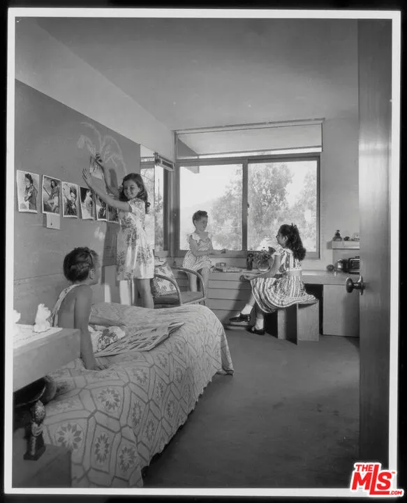 Designed in 1941 by modernist master R.M. Schindler, the Druckman Residence is a rare example of his late-period work in the Hollywood Hills. Conceived for Dr. Jacob S. Druckman and his wife, artist Margaret Druckman, the home features Schindler's distinctly asymmetrical gabled roof--concealing the house from the street while maximizing canyon views and light through dramatic clerestory windows. The residence balances openness with intimacy through Schindler's clever, split-level floor plan that separates the expansive public rooms from the private bedroom wing, creating both intimacy and privacy. The main living room is anchored by a dual indoor-outdoor fireplace, extending the interior seamlessly onto the front patio and reinforcing the home's early commitment to indoor-outdoor living. The adjacent kitchen preserves Schindler's original built-in breakfast nook, paired with updated appliances and surfaces in the spirit of the original design. A den beside the living area offers a quieter retreat with treetop views and sculptural ceiling lines. Down the split-level corridor, four bedrooms maintain a more intimate scale, adding to the home's overall efficiency. The value focus of the mid century movement is more relevant and important today with increased cost of living and ever increasing utility costs. Each is positioned to maximize natural light and connection to the outdoors. The primary suite includes canyon views, generous closet, and a recently updated en-suite bath, while the additional guest rooms also feature original built-ins and backyard access. Outside, newly terraced landscaping leads to a private oval pool--attributed to Richard Neutra. 2764 Outpost Drive is a rare architectural offering, combining architectural significance with everyday livability, one with a deep connection to light and landscape. Fully furnished.