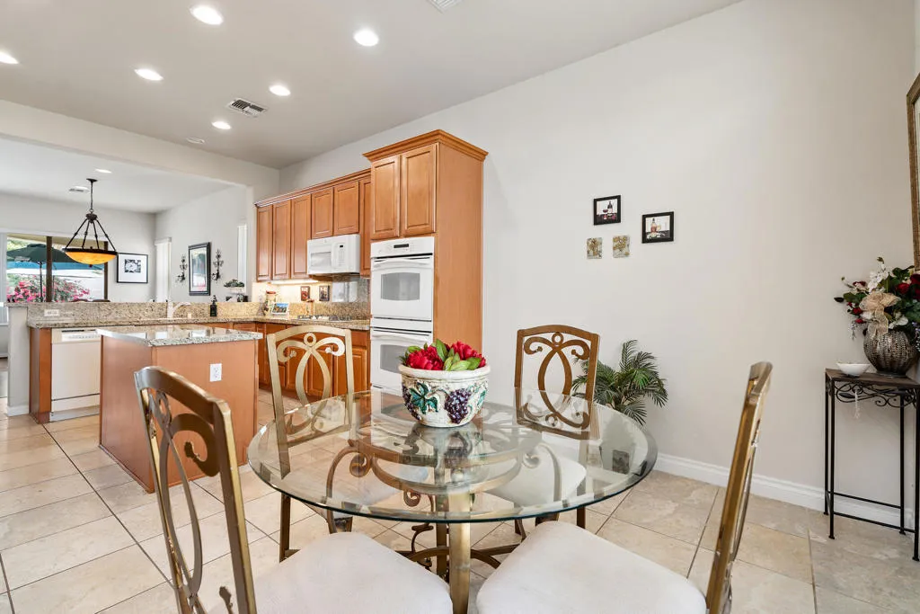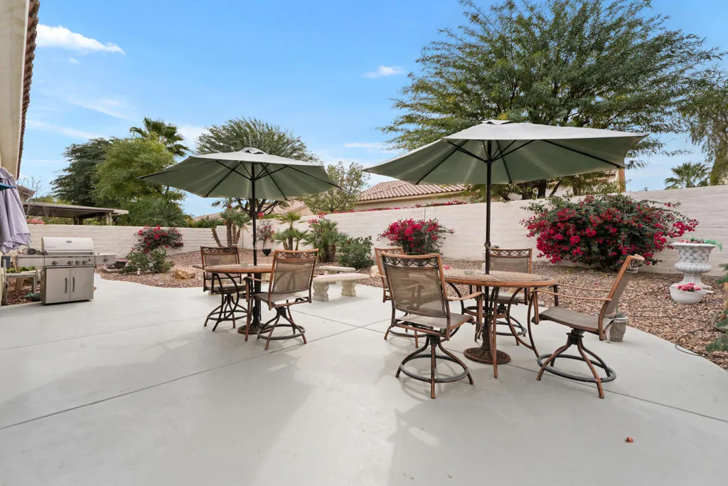 Beautiful popular San Benito floor plan in the prestigious 55+ community of Sun City Shadow Hills. Elegant living with bright, open spaces. The living and dining areas showcase a tasteful mix of tile and hardwood floors. Chef-ready kitchen features granite counters, center island, breakfast bar, recessed lighting, double ovens, built-in microwave and a cozy breakfast nook. Flexible layout includes a den/office plus a hobby room for crafts or a home gym. The primary suite opens to the south-facing backyard and offers a walk-in closet, dual vanities, separate tub and shower. Enjoy a 2-car garage plus golf-cart garage. South-facing backyard features a covered seating area and low-maintenance landscaping, ideal for entertaining or quiet relaxation. Walking distance to the Montecito clubhouse with fitness centers, pools, pickleball and tennis courts, plus an active calendar of social clubs and events. Enjoy a vibrant, maintenance-free 55+ lifestyle where every day brings opportunities for fitness, friendship, hobbies and relaxed desert living.