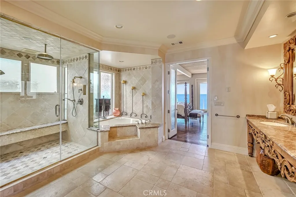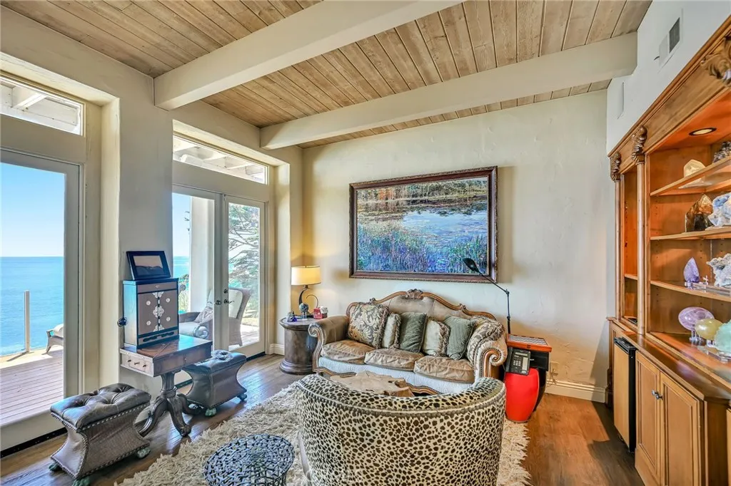 Luxury Live Auction! Bidding to start from $6,000,000! Tucked within the gated coastal community of Victoria Point, this beachfront property offers a front-row seat to Malibu’s coastline, with expansive water views visible throughout most of the home. From inside, you can take in the rhythmic surf, watch dolphins and sea life pass by, and follow the shoreline as it stretches from Broad Beach to Point Dume. Just outside, a short, private stairway leads directly down to the sand, where a hidden cove creates a quiet, tucked-away setting that feels far removed from the typical Malibu experience. The interior is bright and open, designed to balance relaxed daily living with effortless hosting. In the main living space, dramatic wood-beamed ceilings, oversized windows, and a built-in bar create a welcoming environment that opens directly to a spacious deck overlooking the ocean. The kitchen offers functionality and scale with a breakfast bar for casual dining, two ovens, and a sizable pantry for storage. Upstairs, the primary retreat is oriented toward the water, featuring its own fireplace, an attached office or lounge space, and a full-length private terrace. The bathroom includes a soaking tub, generous proportions, and a walk-in closet. Also on the upper level is an additional bedroom, while two more guest rooms are situated downstairs, each with convenient access to a large patio that sits right along the ocean’s edge. With direct entry to a rarely accessed stretch of sand and a setting that feels both peaceful and private, this home delivers a more exclusive, secluded version of the Malibu coastal lifestyle. Sadly for the owners, this home in part of a BANKRUPTCY SALE, but perhaps an opportunity for you. Don't delay.