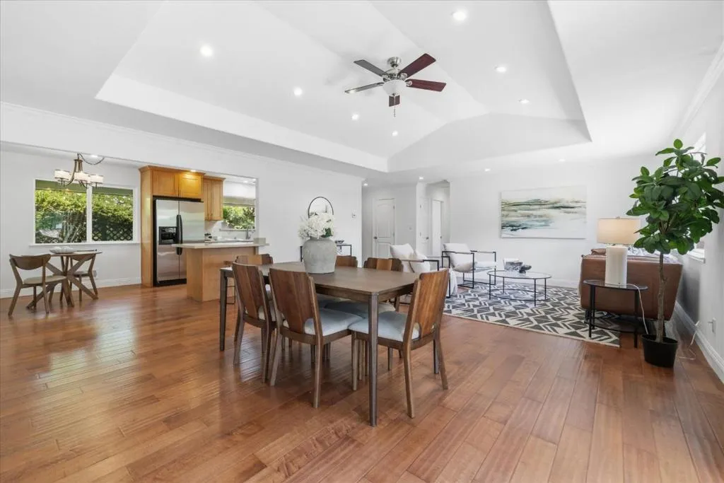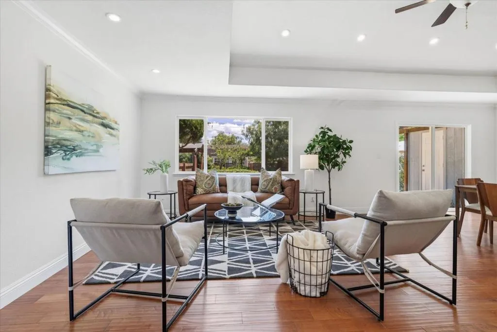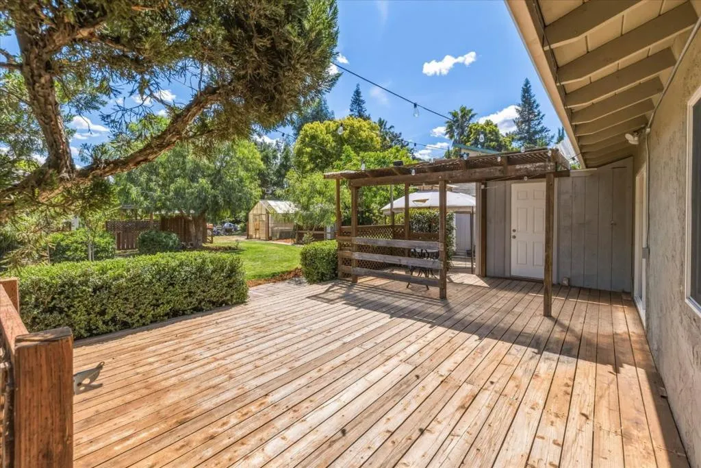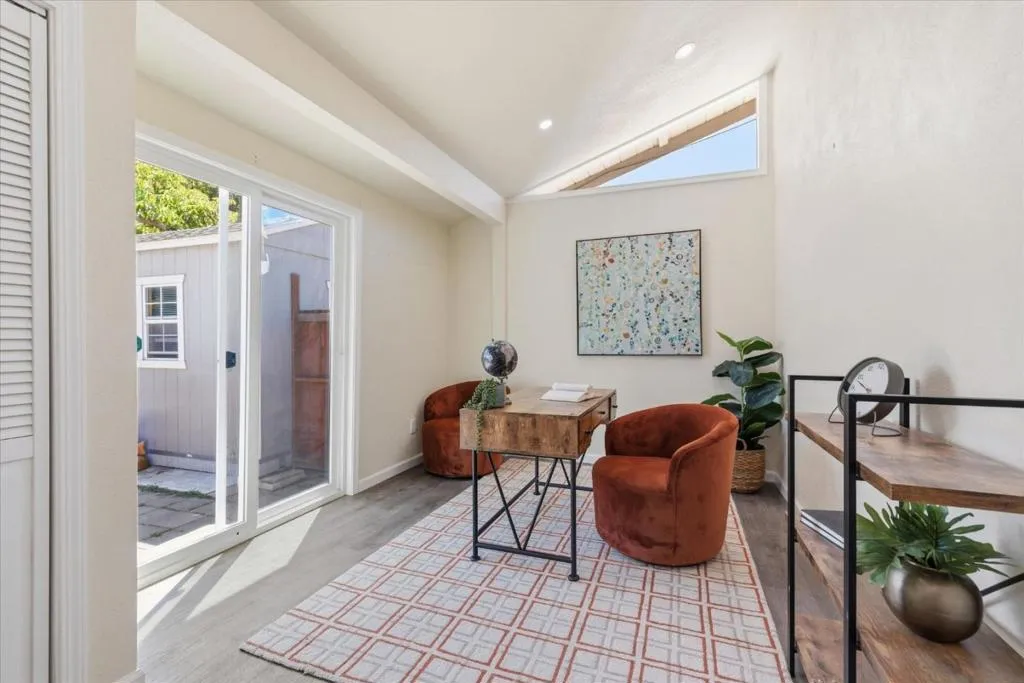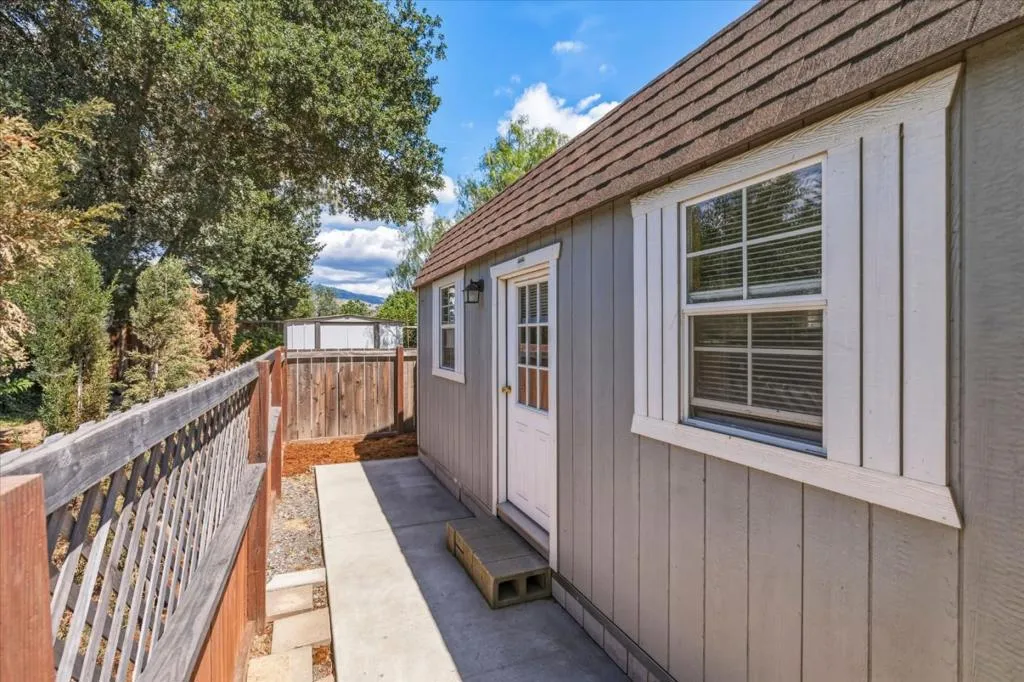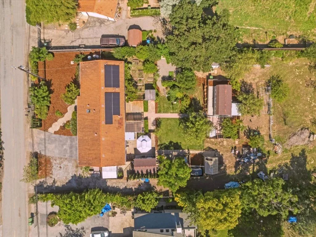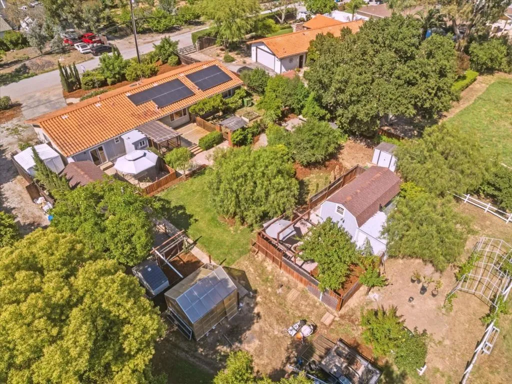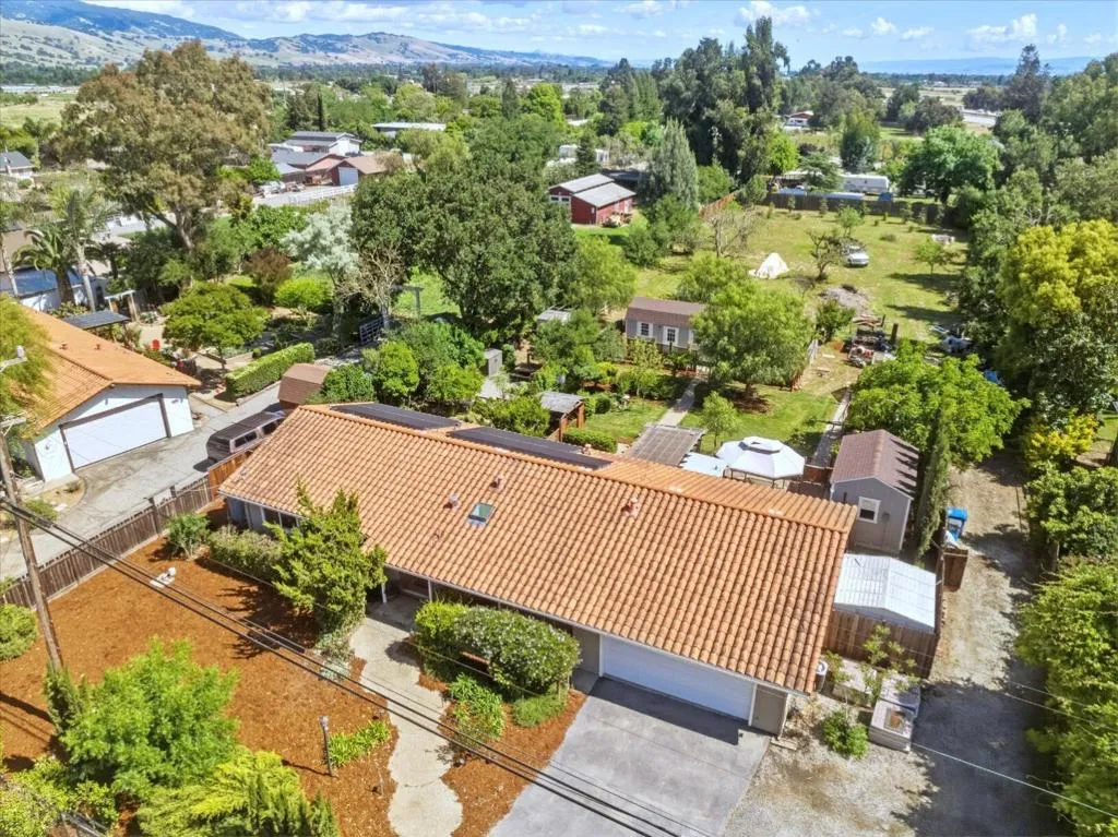 Welcome to your country retreat in the desirable north end of San Martin, just minutes from Morgan Hill. Situated on a flat, usable 40,000+ sf lot, this single-story ranchette blends rural living with modern convenience, offering room to grow. The home features approx. 1,428 sf with 3 bedrooms and 2 bathrooms, plus an expanded bedroom/bath setup beyond the stated square footage, ideal for guests, multigenerational living, or a private office with a backyard entrance. Inside, enjoy an open great room with coffered ceilings, engineered hardwood floors, and an updated kitchen with quartz countertops, stainless steel appliances, and hardwood cabinetry. The peaceful primary suite includes a recently updated shower. Other upgrades include A/C, solar, and water filtration. The property is serviced by a strong private well and offers raised garden beds, a greenhouse, and mature walnut and fruit trees. A detached guest shed with full bath and patio, plus a second finished shed for office/workshop use, add flexibility. Ample parking accommodates RVs, equipment, and oversized vehicles. Zoned for agricultural uses with potential for home business or expansion. Conveniently located near vibrant downtown Morgan Hill and within the sought-after Jackson Academy of Math and Music attendance area.