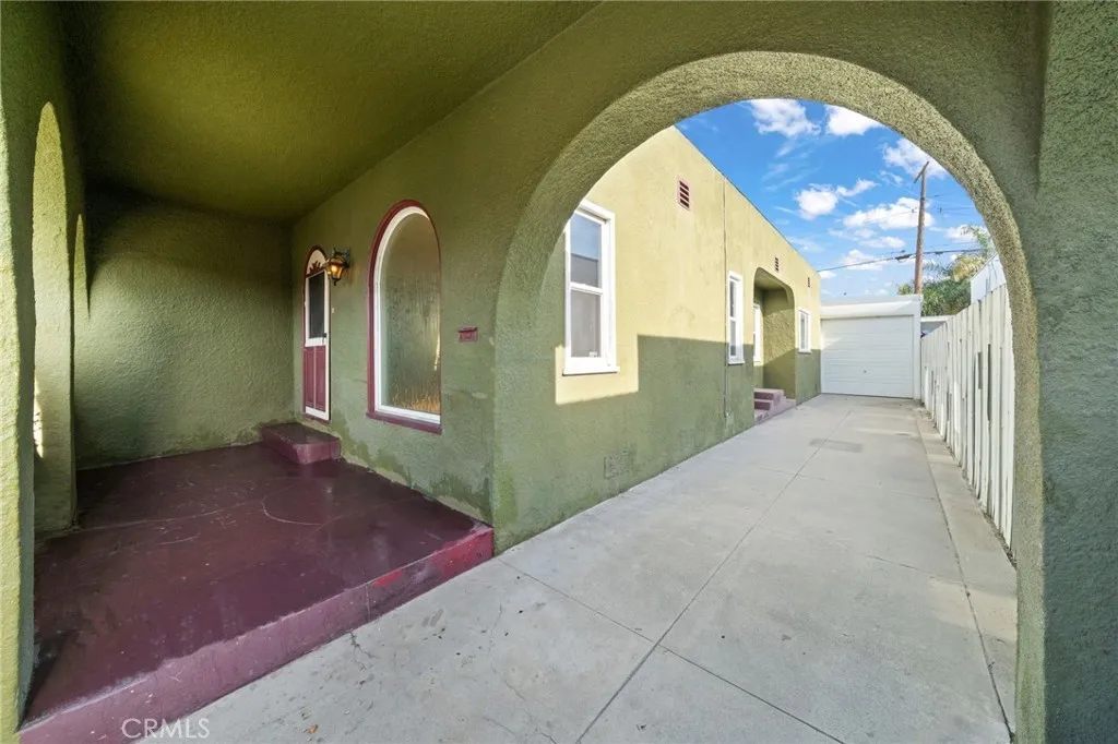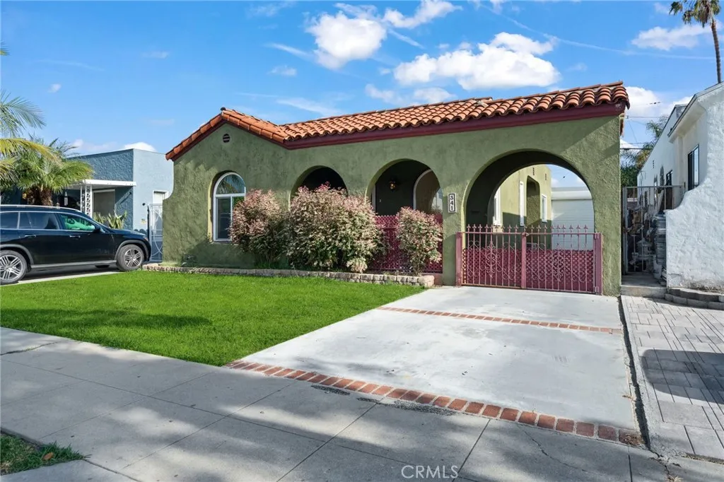 Step into the charm of this enchanting 3-bedroom, 1-bath Spanish bungalow nestled on a quiet one-way street in North Long Beach—where reduced traffic means added peace and privacy. Built in 1931, this home beautifully preserves its original character, featuring graceful arched entryways, built-in cabinetry, and a spacious eat-in kitchen that nods to its historic roots. The thoughtfully designed layout welcomes you with an expansive living room that flows seamlessly into a formal dining area, then into the kitchen—complete with a convenient pass-through window, perfect for entertaining. Along the left side of the home, you’ll find generously sized bedrooms adorned with classic picture rail molding, offering a sense of separation and tranquility from the main living spaces—ideal for both hosting and unwinding. Modern upgrades blend effortlessly with vintage charm, including gorgeous wood-looking laminate flooring throughout, a new AC as well as heating system, Sky light over the shower and solar—providing comfort and efficiency for years to come. Outside, the property continues to impress with ample parking behind a gated garage, accommodating up to three vehicles, plus an extended driveway with room for four more. The backyard is a private retreat featuring multiple seating areas for gatherings, a Tuff Shed for extra storage, and a bonus hidden room behind the garage—perfect for tools, bikes, or a creative workspace. This timeless Spanish-style home offers character, functionality, and modern convenience all in one. A rare find you won’t want to miss—schedule your showing today!