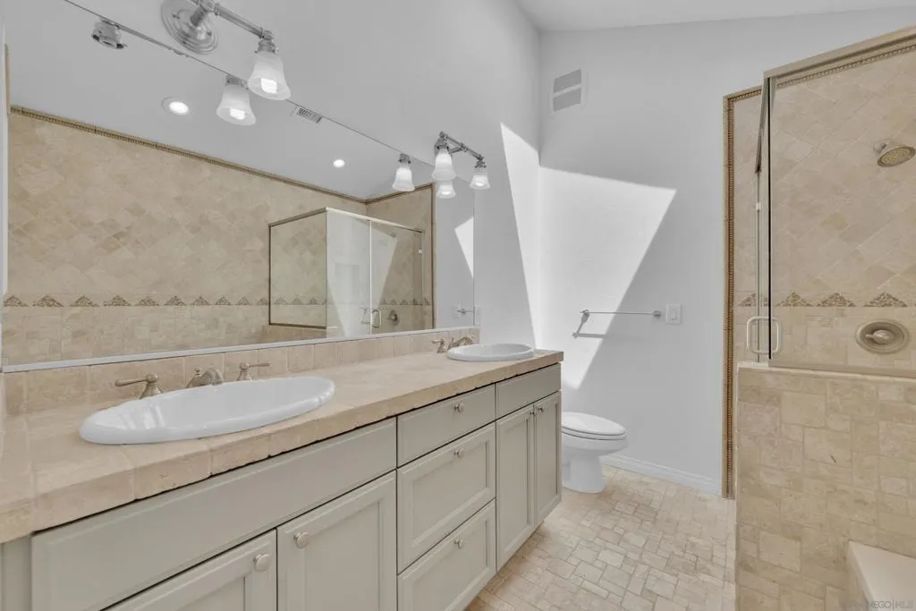 Welcome to your fresh start in Westwood! This stunning Rancho Bernardo home perfectly blends modern upgrades with a voluminous layout. Upon entry, you are greeted by an extremely open floor plan and soaring ceilings that create an immediate sense of grandeur. The interior is refreshed with a crisp paint palette and high-end luxury vinyl plank flooring for a sophisticated, durable finish. Designed for effortless living, the home features a granite-clad kitchen with a large prep island and a unique dual-Primary bedroom floor plan. The upper primary suite serves as a private sanctuary with its own rooftop deck and additional finished attic storage. While the major updates are complete, the home remains an open slate for your personal style. No Mello Roos fees and only one low annual HOA due to the highly acclaimed premier Westwood Club facilities, which include an aquatic center (lap pool and family pool), tennis and pickleball courts, fitness center, gymnasium, and lounge areas as well as year round family activities. An added benefit is its location within the award-winning Poway Unified School District.