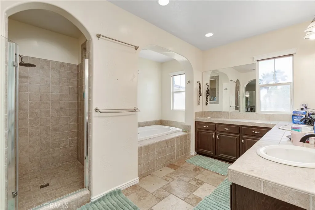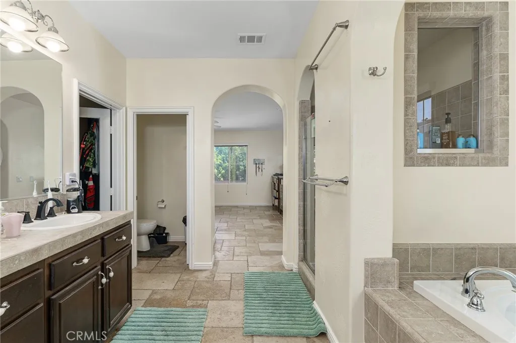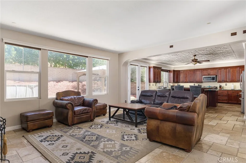 Welcome to 35096 Lantern Light Dr where timeless design meets everyday luxury. This expansive 3,687 sq ft residence offers 5 bedrooms and 5 bathrooms, thoughtfully designed for both comfortable living and elevated entertaining. From the moment you step inside, you’re greeted by elegant architectural details including arched entryways, hand-troweled walls, and a stunning wrought iron staircase. The home features beautiful travertine flooring in a classic Versailles pattern, complemented by rich finishes throughout. The heart of the home is the chef’s kitchen, complete with custom cherry cabinetry, granite countertops, an oversized island with prep niche, and a professional-grade six-burner stainless steel range. The kitchen flows seamlessly into the spacious family room, creating the perfect setting for gatherings and everyday living. Designed with flexibility in mind, the home includes a desirable downstairs bedroom with its own ensuite bath ideal for guests or multi-generational living along with multiple suite-style bedrooms throughout. The luxurious primary suite features a private retreat with fireplace, spa-inspired bathroom with a jetted soaking tub, and access to a serene balcony perfect for enjoying your morning coffee and sunrise views. Step outside to a charming gated courtyard accessible through French doors, offering a private and inviting space for entertaining or relaxing. Additional highlights include an upstairs laundry room with utility sink, dual refrigerators, LED lighting, and a 3-car split garage. With low HOA and an abundance of custom upgrades, this home is truly a rare find.