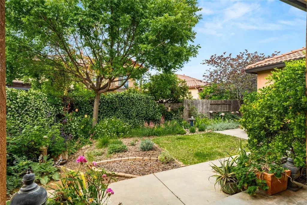 Step into timeless elegance with this beautifully appointed Tuscan-style home, where charm meets modern comfort in an inviting open floor plan designed for everyday living and effortless entertaining. This thoughtfully designed residence offers a split floor plan with three spacious bedrooms plus a separate office filled with natural light—perfect for working from home or a quiet retreat. Rich architectural details like classic wainscoting and newly refreshed imperfect smooth paint create a warm, sophisticated ambiance throughout. At the heart of the home, the stunning kitchen features granite countertops, stainless steel appliances, and a generous pantry, all overlooking the expansive living room anchored by a cozy gas fireplace. Seamlessly blending indoor and outdoor living, the living space opens to a serene backyard garden oasis complete with mature shade trees, and year-round herb and flowering borders. Enjoy organically tended native and drought-resistant front and rear yards adorned with beautiful plantings, including native oaks, gracious Pistache tree (gorgeous color in fall), red bud, espaliered Meyer lemon, fragrant star-Jasmine, and many fragrant colorful cottage garden roses, providing a sense of sanctuary well-being close to all that Chico has to offer. Additional highlights include elegant travertine tile flooring, a durable tile roof, and owned solar for energy efficiency. The charming front patio with a pergola offers the perfect spot to sip your morning coffee and unwind to Birdsong and flowers, with views out to the fields beyond and the Sutter Buttes in the distance. Ideally located at the end of a wide, tree-lined street, in a well-established neighborhood, this home provides both privacy and convenience—just minutes from Meriam Park, shopping, and easy freeway access. This is a rare opportunity to own a home that truly has it all.