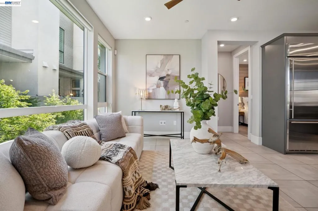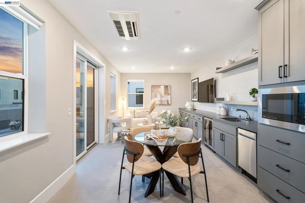 Former model home by award-winning builder SummerHill Homes, this exceptional corner residence is located in Nuevo at Lawrence Station—an exciting urban community designed for modern living. Residents enjoy access to over 3 acres of thoughtfully planned amenities, including parks, a community garden, dog park, outdoor movie area, and neighborhood-serving retail. This spacious home offers 4 bedrooms, 3 full bathrooms & 2 half baths, attached 2 car-garage with high ceilings & abundant natural light throughout. The main level showcases a beautifully designed open-concept layout featuring a generous living room, a stunning chef’s kitchen with a large island, and a dining area that flows seamlessly to a private deck—perfect for indoor-outdoor living. A junior suite with its own bedroom and full bath, along with a powder room, completes this level. Upstairs, the luxurious primary suite serves as a private retreat, complete with a walk-in closet, large walk-in shower, and dual-sink floating vanity. Two additional bedrooms, a full hallway bathroom, and a conveniently located laundry room round out this floor. The top level offers a versatile bonus space ideal for a home office, media room, or entertainment area, along with access to a private rooftop deck featuring a cozy fireplace—perfect for relaxing or hosting guests. Ideally situated within walking distance to Costco, a variety of dining options, and Caltrain’s Lawrence Station, this home also provides convenient access to major tech campuses including Apple, LinkedIn, Nvidia, Meta, and Google.