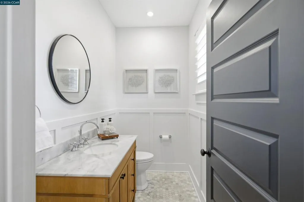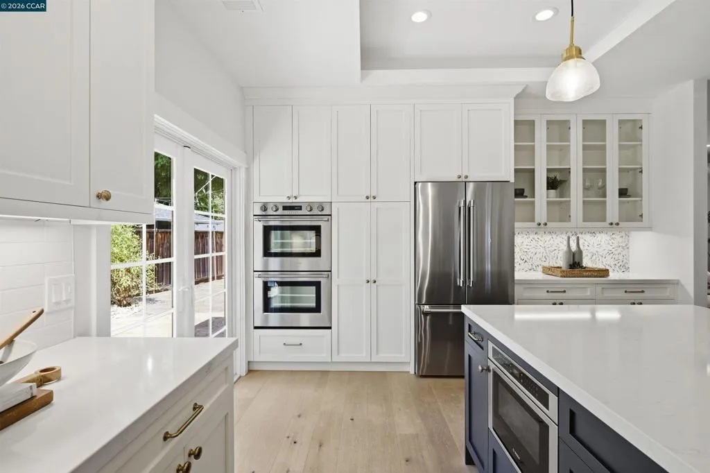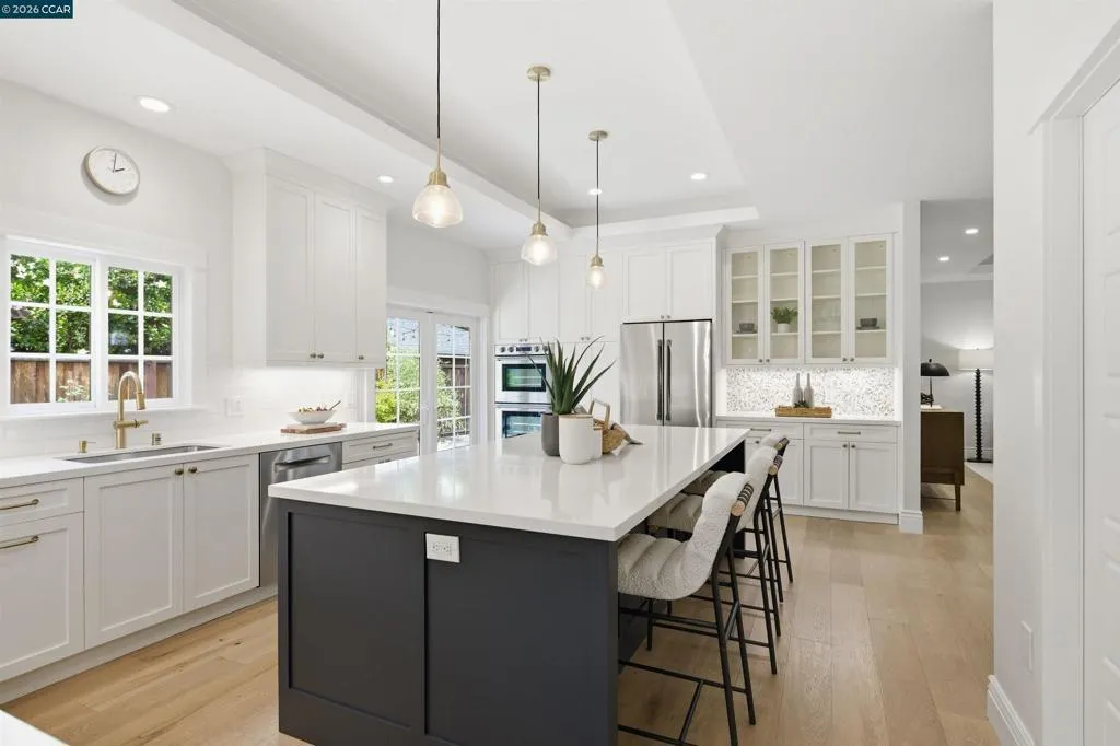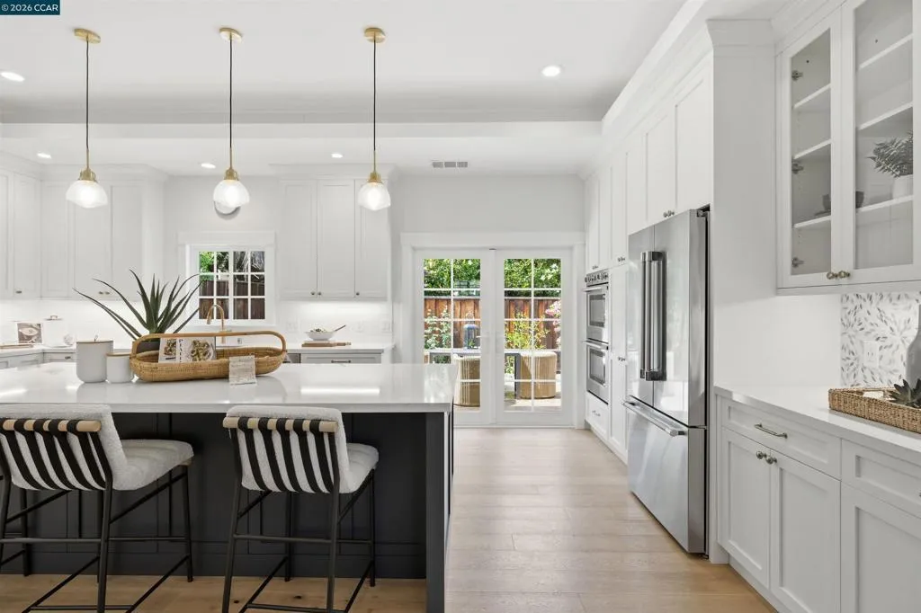 Located in one of the best spots of Gregory Gardens, 1742 Mary Drive offers an exceptional setting with tree-lined streets and close proximity to the trail. Completely rebuilt, this is not your typical Gregory Gardens ranch—featuring soaring ceilings, abundant natural light, and a modern yet warm, vintage-inspired aesthetic throughout. The stunning kitchen is designed for entertaining, with tons of custom wood cabinetry, a large center island, quartz countertops, custom tile backsplash, and premium stainless appliances including a Wolfe gas range and Fisher & Paykel double ovens. Just off the kitchen, a spacious laundry room provides ample storage and convenience. French doors provide access to the lush & beautiful, low maintenance back yard. The primary suite is light-filled and generously sized, featuring a beautifully appointed bathroom with dual vanities, a large walk-in shower with glass enclosure, and a pass-through closet accessible from two sides. Two additional bedrooms are well-sized and inviting. A rare highlight is the walk-in attic—easily accessible with ample lighting, room to walk around. Additional features include white oak hardwood floors, solid wood 5-panel doors, recessed lighting, plantation shutters, fresh interior paint, a custom stamped concrete driveway, and backyard patio surrounded by mature trees. All major systems were replaced within the last 5-8 years, including HVAC, tankless water heater, electrical, and plumbing. Enjoy walkability to downtown Pleasant Hill with easy access to BART, freeways, and everyday amenities. Open Saturday and Sunday 4/25 & 4/26 from 2-4pm. Please join us, we'd love to welcome you home!