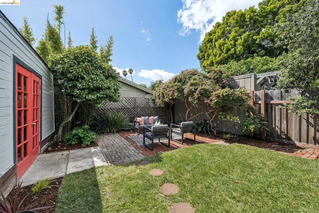 Charming Berkeley bungalow in an unbeatable location just moments from Solano Avenue. This sweet home features beautiful hardwood floors, great natural flow, and a warm, welcoming feel throughout. The living and dining areas blend seamlessly, creating an open and comfortable space for everyday living and entertaining. Two well-positioned bedrooms are connected by a Jack-and-Jill bathroom, offering both functionality and character. The kitchen has a classic Wedgewood stove and an adjoining laundry room, along with an adjacent bonus office space ideal for working from home or creative use. Step outside to a lovely back deck overlooking a cozy backyard with a brick patio, perfect for relaxing or hosting. The detached rear cottage (an extra 259 sq ft) adds flexibility with French doors opening to the yard, plus a sink and toilet, making it a great space for guests, a studio, or additional workspace. With its cheerful personality and abundance of sunshine throughout, this home's availability is a special opportunity in a highly sought-after neighborhood. BESO score: 7