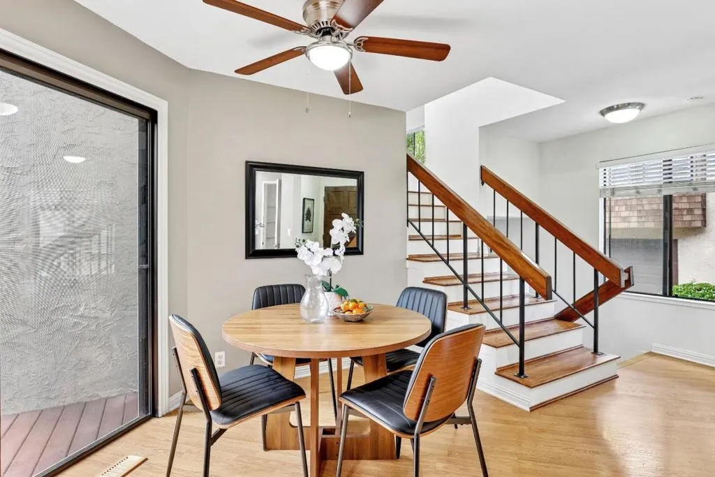 Welcome to this quiet end unit, sun-filled and move-in ready 2-bedroom, 2-bath townhouse, ideally located in the heart of Santa Clara yet tucked away in an intimate 10-unit complex. Featuring a spacious open floor plan with vaulted ceilings and laminate hardwood floors, this home offers both comfort and functionality. The inviting living room includes a cozy fireplace and wet bar, perfect for entertaining or relaxing evenings at home. The kitchen offers ample cabinetry and counter space, and flows seamlessly to a private outdoor deck. Upstairs, the expansive primary suite provides a peaceful retreat with abundant natural light, walk in closet and ample space. The well-positioned second bedroom is thoughtfully located on the opposite side, offering privacy, perfect for guests, a home office, or shared living. A spacious two-car garage with in-unit laundry, offering both convenience and extra storage. Ideally located near Santa Clara University, with easy access to premier shopping and dining at Santana Row and Westfield Valley Fair, as well as major tech campuses including Apple, AMD and NVIDIA, this home delivers the perfect balance of comfort, privacy, and connectivity.