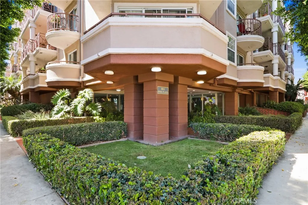 STEP INTO REFINED CITY LIVING AT ITS BEST! An exceptional layout, open-concept design, and numerous upgrades, this oversized two-bedroom, two-bath condo has been beautifully remodeled throughout. Expansive floor-to-ceiling sliding doors open to a large private balcony, filling the home with natural light. The spacious living room centers around a striking fireplace, while the dining area flows seamlessly into both the living room and kitchen—perfect for entertaining. Highlights include a coffered ceiling, an elegant chandelier, and a full wet bar. The kitchen is a chef’s dream, featuring upgraded cabinetry and countertops designed for both style and functionality. For added privacy, the bedrooms are situated on opposite sides of the living room. The primary suite is generously sized and features double entry doors, beautifully appointed en suite bathroom with dual sinks, quartz-style counters, excellent lighting, a soaking tub, and a separate shower. Additional perks include a walk-in closet, a secondary closet, and a versatile nook ideal for a home office or reading space. The second bedroom is also spacious and includes a walk-in closet, while the guest bathroom is move-in ready with a tub/shower combination, vanity, and updated lighting. Additional features include an in-unit side-by-side washer and dryer, laminate flooring throughout, fresh paint, and bright interiors with sliding doors that open to a cozy private balcony from each room. This unit includes two parking spaces and a private storage locker. The pet and bike-friendly community at 801 Pine offers a rooftop patio, central courtyard with seating, bike storage, a community room, and guest parking. Ideally located in the heart of downtown Long Beach’s historic Pine Avenue, this vibrant neighborhood places you steps from the best the city has to offer—beaches, dining, shopping, entertainment, galleries, farmers markets, concerts, and more. Commuters will appreciate the easy access to public transportation and major freeways. With the upcoming Olympics bringing even more excitement to the area, this is an incredible opportunity to own in one of the city’s most sought-after communities. Don’t miss this great opportunity!