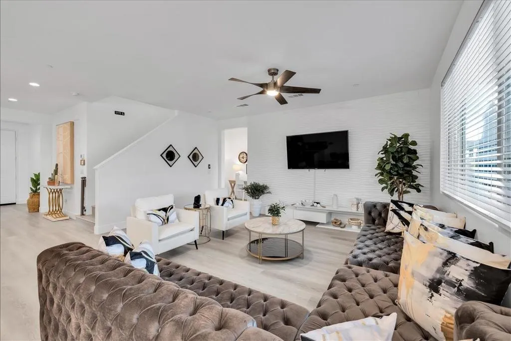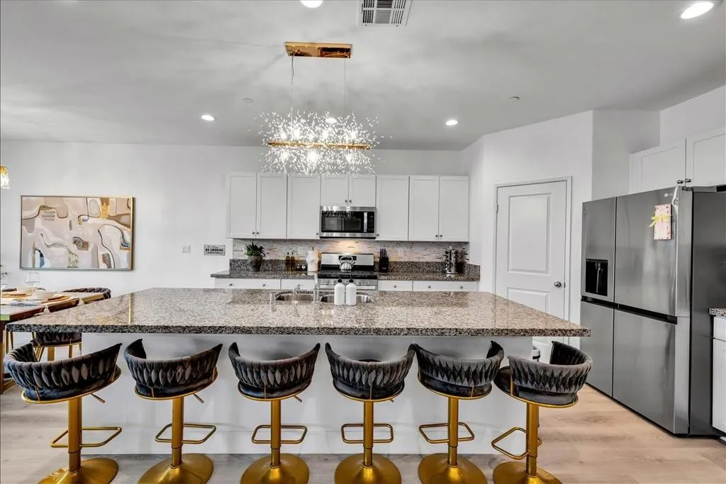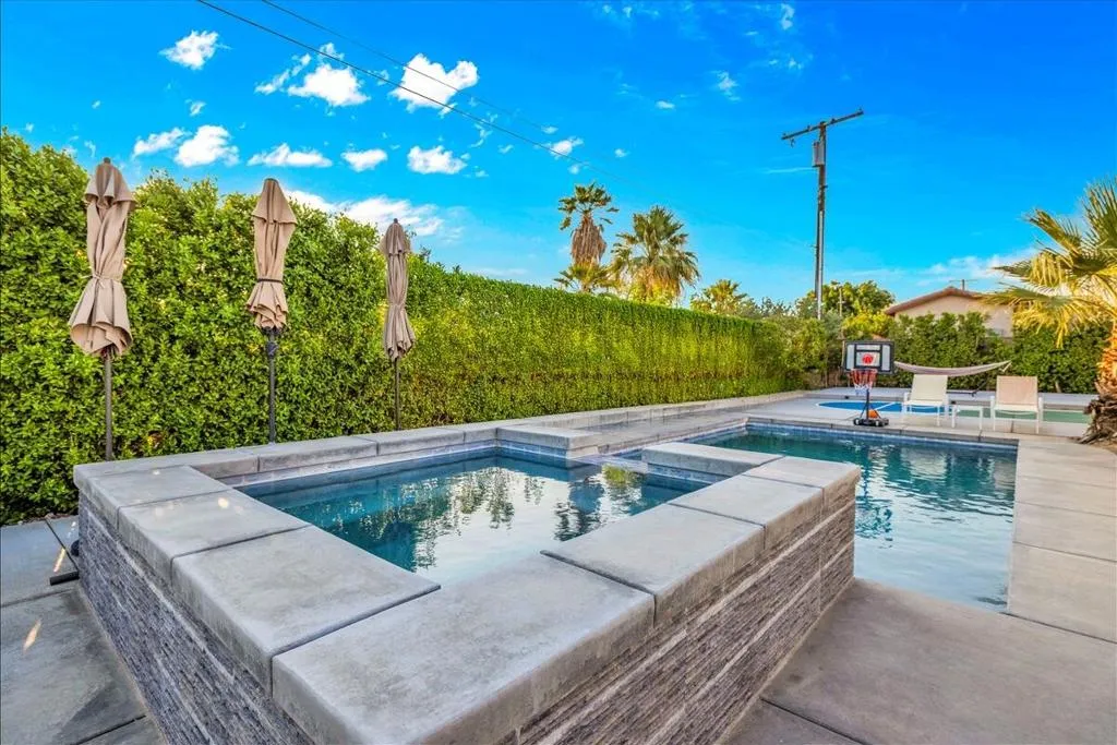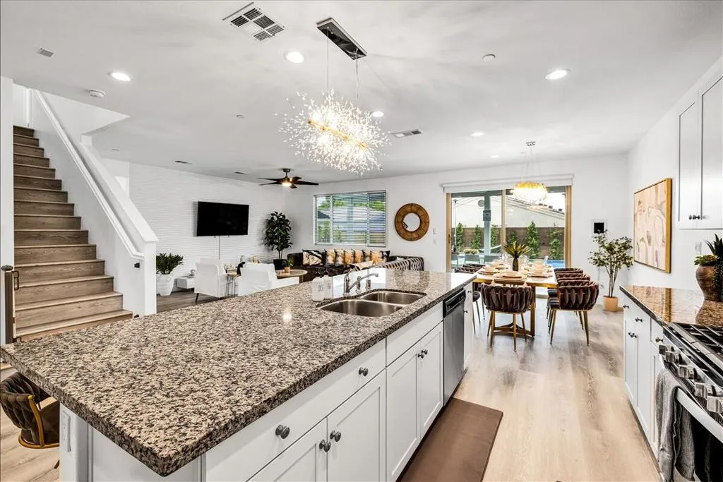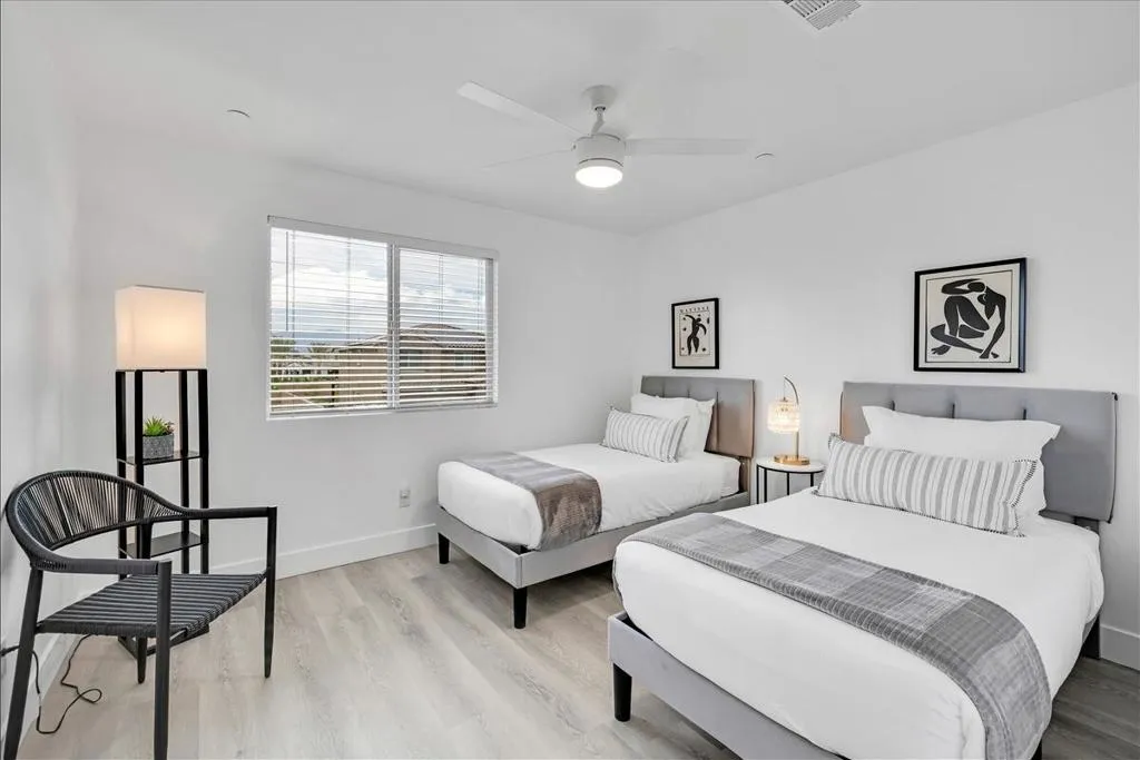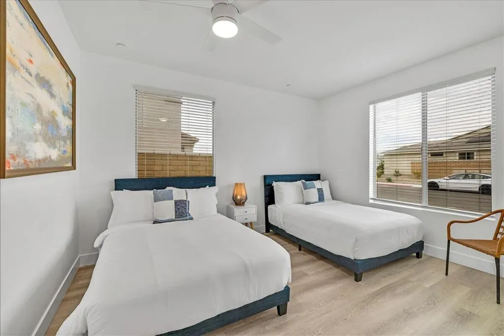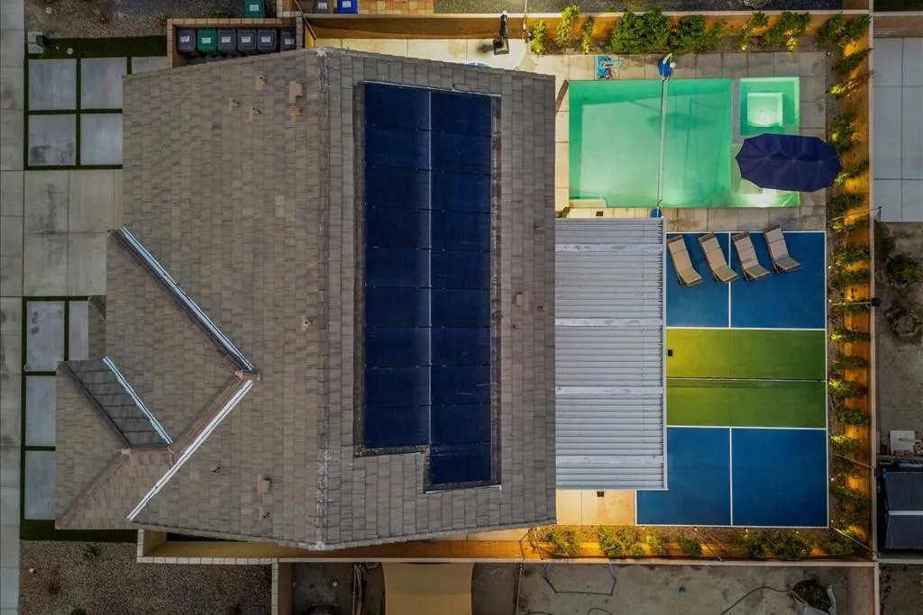 Short Term Rental Approved! Exceptional income producing with upcoming reservations, offered fully furnished and designed for luxury resort style living. This turnkey property features a bright open concept floor plan with wide plank flooring, recessed lighting, abundant natural light, and high end designer finishes throughout. The modern kitchen offers sleek cabinetry, stainless steel appliances, expansive countertops, and a large center island that opens seamlessly to the dining and living spaces perfect for entertaining. The stylish living room showcases a custom accent wall and curated furnishings included with the sale. Step outside to an incredible private backyard retreat featuring a brand new pool and spa, dramatic landscape lighting, artificial turf, and lush privacy landscaping. Designed as an entertainer's dream, the outdoor space includes multiple lounge areas, outdoor dining, BBQ area, fire pit, putting green, private pickleball court, basketball court, and recreational game spaces creating a true vacation style experience. Additional highlights include solar for energy efficiency, all new systems, a game ready garage space, and an indoor laundry room with two washers and two dryers included. Low maintenance landscaping and thoughtful upgrades throughout make this property truly move in ready. Ideal as a primary residence, vacation home, or high performing investment opportunity, this fully furnished new construction home delivers effortless luxury and exceptional income potential. Contact listing agent for additional details and schedule your private showing today.