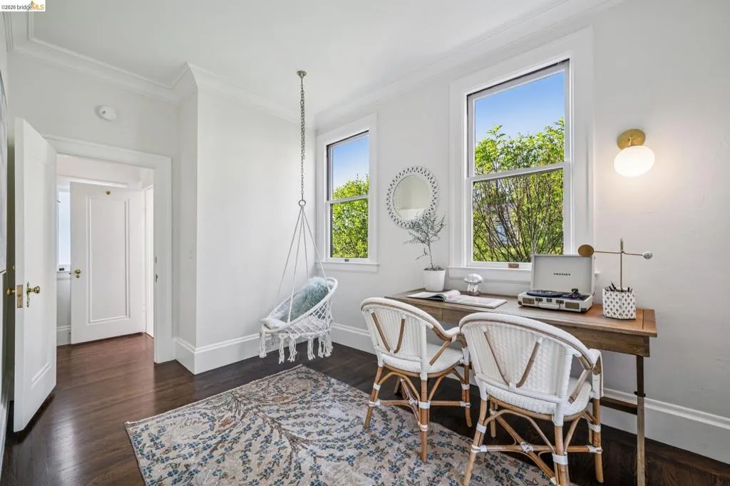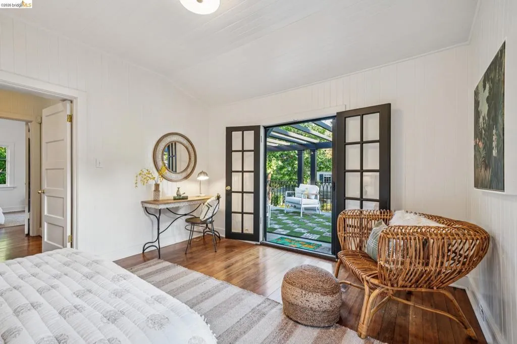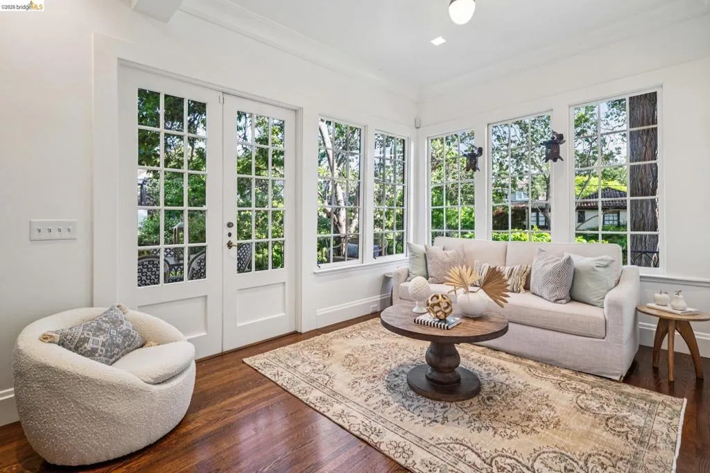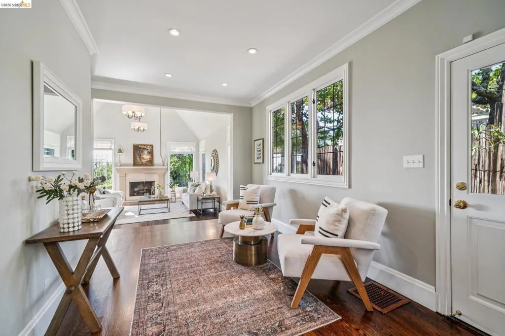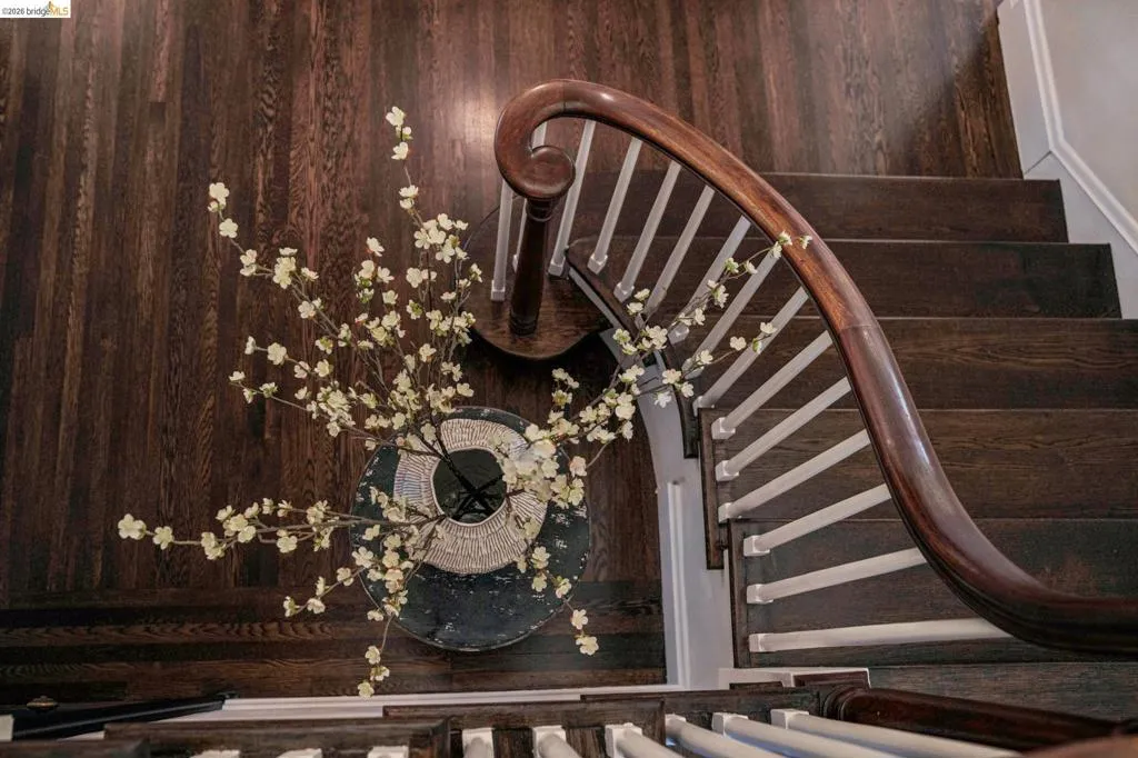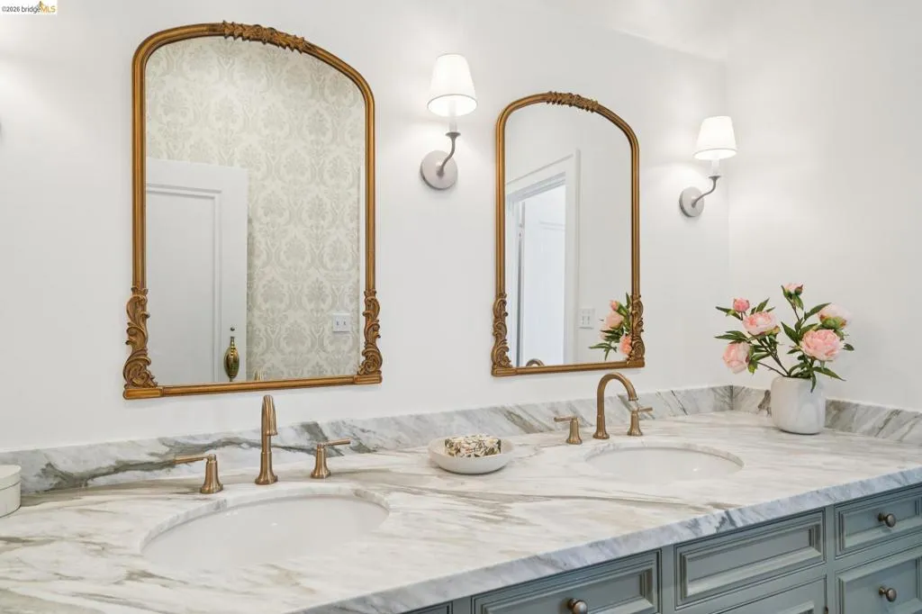 This exceptional six-bedroom estate and detached cottage exemplify the best of the Piedmont lifestyle. Located near top-rated K-12 schools, verdant parks, and the newly re-opened community pool, this 1907 home blends historic nostalgia with a masterfully updated floorplan. Built with original stone from the Rockridge quarry, the residence offers an elegant yet comfortable flow ideal for modern living. The entry foyer leads to gracious spaces with soaring ceilings and a grand central staircase. At the heart of the home, the modern epicurean kitchen and family great room feature professional appliances, a butler’s pantry, and an expansive island. Accordion glass doors create a seamless transition to a patio, hot tub, and lush lawns—perfect for large-scale entertaining or quiet afternoons. The main level also hosts a formal living room with one of the home’s four fireplaces, a den, and a large library/billiards room. West-facing windows capture stunning sunsets over a garden filled with citrus, roses, and fruit trees. The upper level offers four ensuite bedrooms. The primary suite enjoys views of Oakland, San Francisco, and the Bay, while two additional bedrooms feature French doors leading to a copper-inlaid balcony. A large attic provides potential for an additional 1,000+ square feet of development. The lower level serves as a entertainment hub, featuring a historic bar (a former speakeasy?) with a wood-burning fireplace and a climate-controlled wine room. This level also includes a fifth ensuite bedroom with its own kitchen and laundry, ideal for guests. To the east, a light-filled detached two-bedroom cottage sits above a three-car garage. Equipped with its own heating, hot water, and laundry. Two sets of French doors lead to a sunny and cheerful deck.