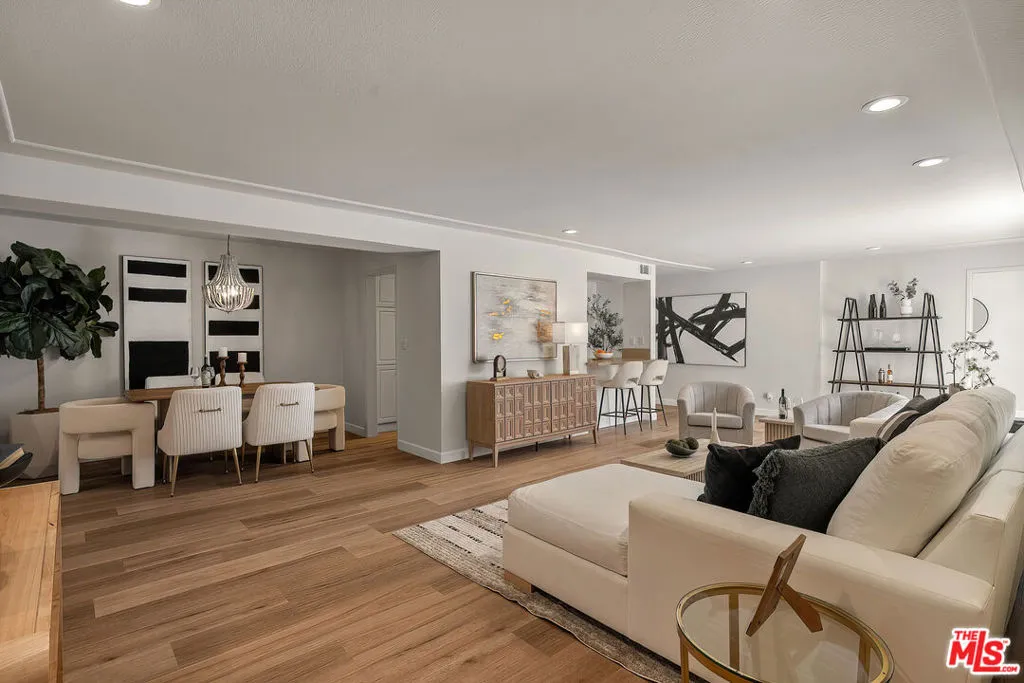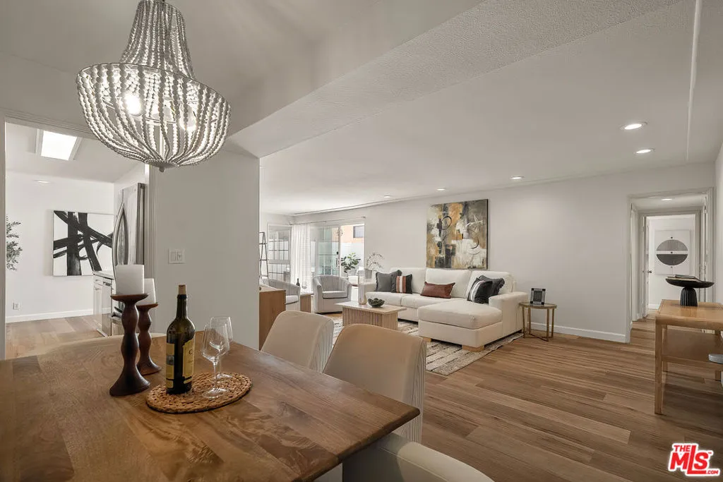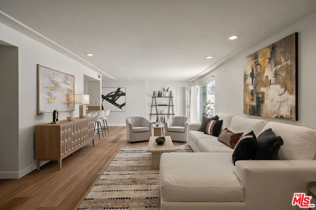 A light-filled 2-bedroom, 2-bath condominium in the heart of Sherman Oaks, blending classic style with the ease of modern living. Freshly painted throughout, it features a generous living room with LED recessed lighting, luxury vinyl flooring, a dedicated office space with pocket door for privacy, an updated kitchen with breakfast bar, newer stainless-steel appliances, and a convection oven. A separate dining area completes the interior, while a large private outdoor patio extends the living space. The primary suite includes an en-suite bath. There is second well-proportioned bedroom and a full hall bath completes the home. Timeless in style and primed for personalization, this is a rare find just minutes from Sherman Oaks' best shopping, dining, and freeway access.