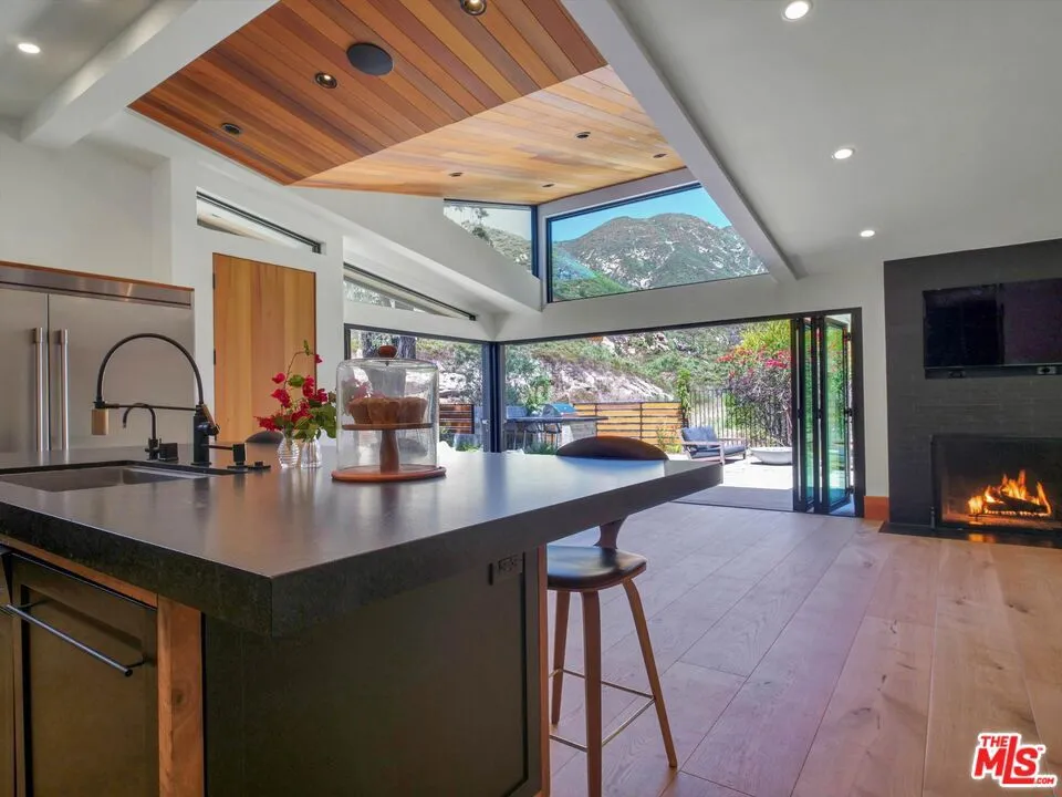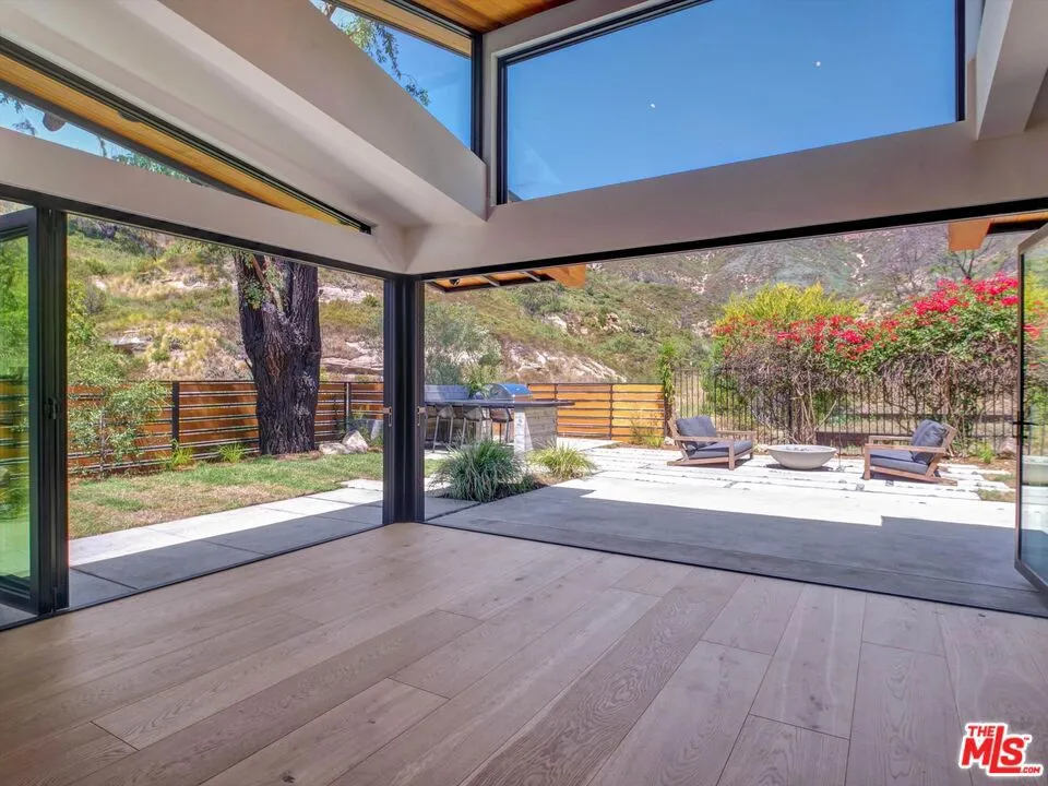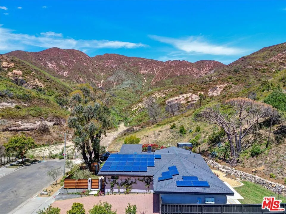Tucked away on a quiet cul-de-sac in coveted Malibu's Sunset Mesa enclave, this private garden estate offers a rare blend of privacy, resilience, and elevated coastal living just moments from the ocean. This thoughtfully upgraded residence stands as a testament to quality and care, having fully survived the Palisades fires and subsequently undergoing extensive remediation and enhancements to meet today's highest standards. Ideally situated within close proximity to Santa Monica, Palisades and it's schools, and within the highly regarded Malibu school district, this home is designed for comfort and entertaining. The home features a gourmet custom kitchen outfitted with professional-grade appliances, including a 6-burner range with griddle, dual stoves, a full-size commercial refrigerator, and a restaurant-quality nugget ice machine. An under-sink water filtration system and seamless connectivity to adjacent living spaces make it as functional as it is refined. Indoor-outdoor living is at the forefront, with extra-tall windows and sliders flooding the interiors with natural light and opening to lush, meandering garden spaces. Every room enjoys direct outdoor access and tranquil garden views, creating a seamless connection to nature. The grounds are a curated retreat, featuring mature fruit trees (avocado, Meyer lemon, blood orange, lime, mandarin, passion fruit, and fig) alongside hand-built stone walls, a low-water lawn, and multiple areas for gathering, including an outdoor kitchen, dining area, and gas firepit. The home is equally well-equipped for modern living, offering FiOS fiberoptic high-speed internet, a fully integrated Sonos sound system wired throughout the interior, including a bedroom that's equipped to serve as a media room. Smart Home features include Nest/Google security cameras, while practical upgrades such as solar panels, a whole-house generator hookup, and a brand-new HVAC system (including in the garage/bonus space) ensure efficiency and peace of mind. Additional highlights include a private primary suite with custom closets, built-in office and shelving, two full bathrooms plus a powder room, and both gas and wood-burning fireplaces. With mountain views, exceptional privacy, and close proximity to Malibu's iconic coastline, this is a turnkey opportunity in one of the area's most desirable neighborhoods.