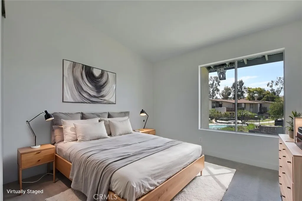 Welcome to your new move in ready condo! This condo is in a gated community and has been newly renovated; new custom kitchen cabinets, quartz counter tops, appliances, recess lighting, light fixtures, paint, baseboards, doors, closet doors, waterproof vinyl flooring, carpet, bathroom vanities and newly tiled bathrooms. Everything was done intentionally to welcome its new owners. This specific unit is tucked away at the end of the complex, with views of pools, two green belts and beautiful hills. The ceilings are vaulted making this 2 bed/2 bath home feel amazing. Both bedrooms are spacious and have large closets. The windows are very large and bring in so much natural light. Right off Barton Road and Reche Canyon, 5 minutes from Loma Linda University, VA Hospital and 10-15 minutes from both downtown Redlands and Riverside. Close to schools and shopping centers for convenience. Realtors please take note: There is some water damage on the roof overhang over the balcony- per HOA rules, owner is not allowed to repair anything on the exterior. Seller requested HOA to repair and they have updated seller that it will be repaired in May. HOA includes water & insurance. One assigned carport space plus ample guest parking on site.