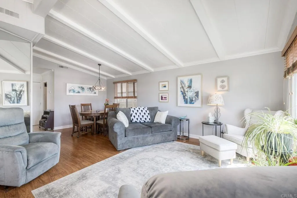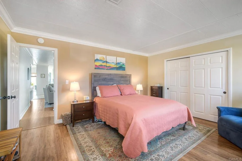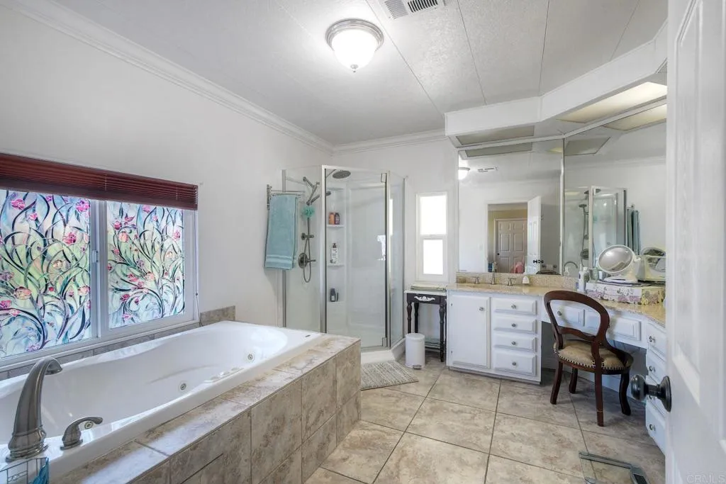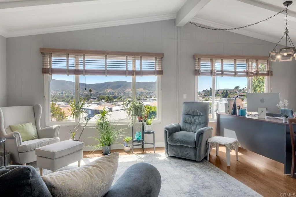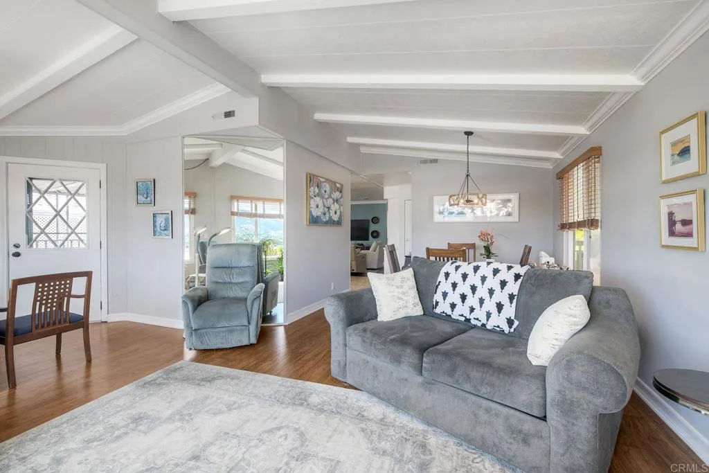Enjoy breathtaking views of Double Peak Mountain from this beautiful home in Palomar Estates West, situated on a premium lot with no neighbors directly behind. As you relax in the living room, you’ll immediately notice the vaulted ceilings and abundance of natural light streaming through large dual-pane windows, perfectly framing the scenic views. The kitchen has been tastefully remodeled with tile flooring, white cabinetry, stainless steel appliances, a walk-in pantry, and a full-height tile backsplash that adds a clean, modern touch. The spacious primary suite features a walk-in closet and an en-suite bathroom complete with a large soaking tub, ideal for unwinding at the end of the day. In addition to this stunning home, the community offers resort-style amenities including a pool, spa, sauna, BBQ area, billiards room, tennis courts, pickleball courts, a fitness center, putting green, RV parking, and more. Lastly, this home is on registration, meaning no property taxes - an exceptional added value.