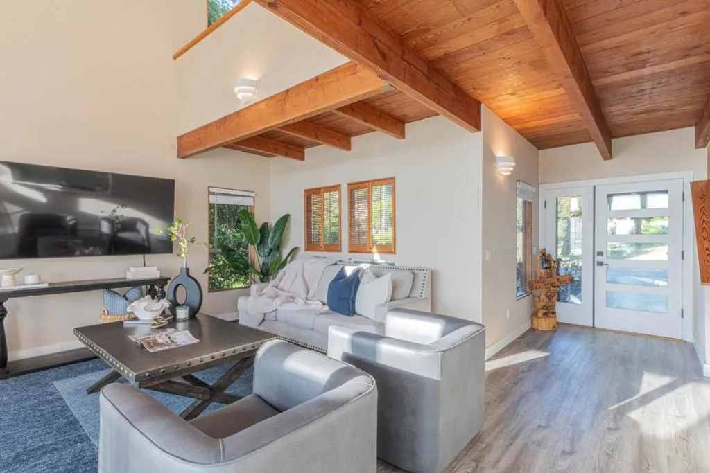 Set along prestigious Yankee Point Drive in the coveted Carmel Riviera, this exceptional three-bedroom, two-bath residence offers a rare opportunity to own a refined coastal retreat on an expansive 18,516 sq ft lot, complete with access to a private beach and secluded cove. Encompassing approximately 1,822 sq ft, the home reflects the essence of Carmel livingwhere privacy, natural beauty, and timeless design converge. Soaring open-beam ceilings, skylights, and rich wood flooring create a warm, light-filled ambiance throughout. The thoughtfully designed kitchen features quartz countertops and a full suite of appliances, flowing seamlessly into the family room for effortless everyday living and entertaining. A wood stove fireplace anchors the main living area, complemented by forced air propane heating and central AC for year-round comfort. The flexible floor plan includes a ground-level bedroom and full bath, ideal for guests or multigenerational living. Additional features include a breakfast nook, formal dining area, and a two-car garage with laundry hookups. Located within the Carmel Unified School District, this property offers a rare blend of comfort, character, and an unparalleled coastal lifestyle.