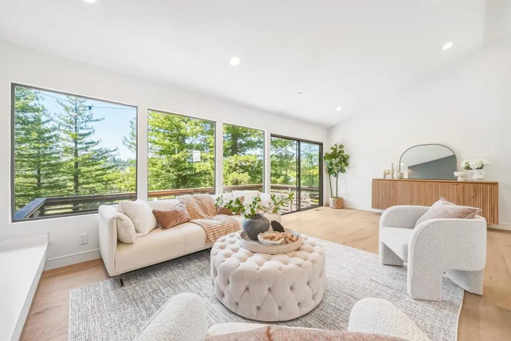 Tucked away in the coveted Oakland Hills, this beautifully updated residence offers the perfect blend of privacy, space, and modern comfort. Located in the desirable Grass Valley/Chabot Park Estates neighborhood, this expansive 4-bedroom, 3-bathroom home boasts 3,627 sq. ft. of living space on a generous 24,579 sq. ft. lot. The light-filled living and dining areas flow effortlessly into a bright, open-concept kitchen ideal for everyday living and effortless entertaining. Just steps away, a sunken family room features a cozy electric fireplace and opens to a private deck with tranquil tree-top views. The primary suite serves as a spacious sanctuary, complete with a large en-suite bathroom and ample closet space. Two additional bedrooms and a full bath are conveniently located nearby, offering flexibility for family, work-from-home needs, or guests. On the opposite wing, a second en-suite bedroom creates an ideal space for guests or multi-generational living. Downstairs, discover a versatile bonus room perfect for a home gym, playroom, creative studio, or private retreat alongside a separate utility/storage room for added functionality. Don't miss this rare opportunity to own a private hillside oasis in one of Oakland's most sought-after neighborhoods!