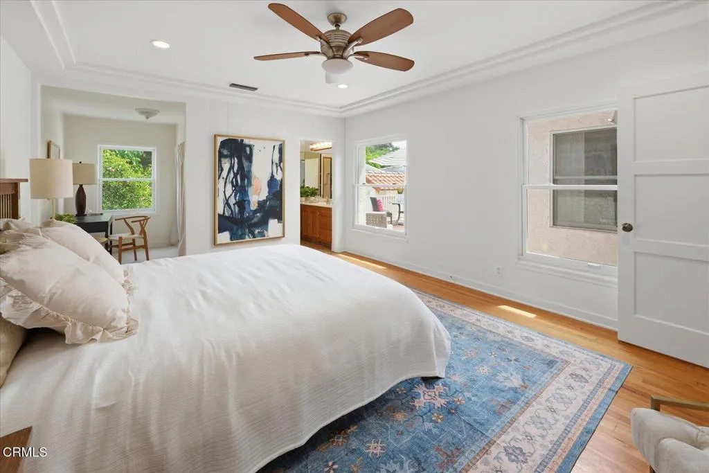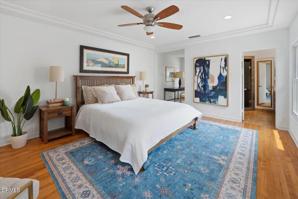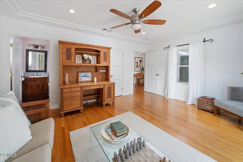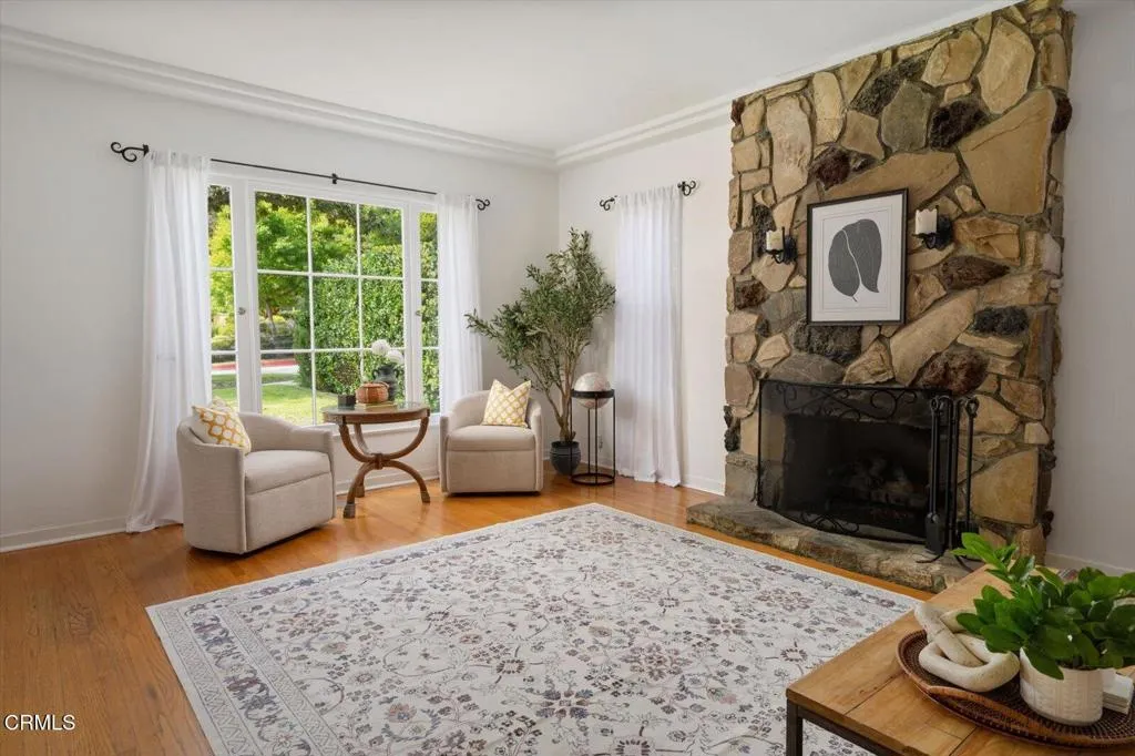 Step into the timeless elegance of this 1937 Character Spanish home, perfectly situated on one of Glendale's most charming tree-lined streets and updated with the modern efficiency of fully paid-for solar panels. This rare single-story residence greets you with a wonderful front porch that sets a tone of classic sophistication. Inside, the home's rich history shines through pristine original hardwood floors and authentic wood windows that bathe the interior in soft, natural light. The heart of the home is a sprawling living room anchored by a majestic fireplace, offering an inviting space for both quiet evenings and grand gatherings.The residence flows seamlessly into a bright, sun-drenched kitchen, complete with a charming window nook perfect for casual dining. Each of the four spacious bedrooms offers a peaceful retreat, complemented by three bathrooms and a level of generous closet space rarely found in homes of this vintage. Every corner reflects a commitment to preserving the home's original soul while providing the comfort and scale required for modern living.The transition to outdoor living is equally impressive, featuring a lovely fenced-in backyard anchored by a magnificent mature sycamore tree. Whether you are hosting friends on the deck or enjoying a quiet afternoon in the shade, the grounds offer a private sanctuary for relaxation. Located with easy access to the 2 freeway, this home provides a seamless commute to Downtown LA and surrounding areas. Complete with a large two-car detached garage, this is a rare opportunity to own a piece of Glendale's architectural heritage while enjoying sustainable, low-cost energy.