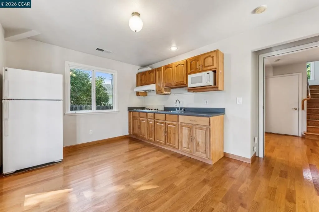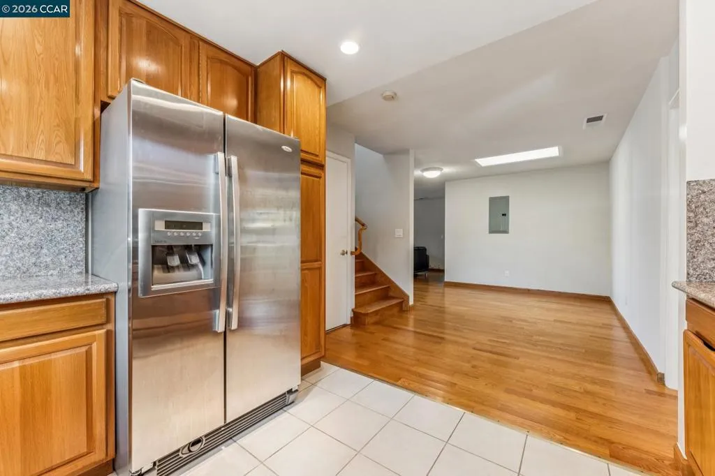 Welcome to a truly rare find in the heart of El Cerrito. Spanning two expansive levels and meticulously upgraded living space, this four bedroom, four bathroom residence is perfect for today’s modern living. This stunning home is centrally situated from El Cerrito Plaza and Solano Ave, and it is well-removed from traffic. An inviting walkway, porch entry with mature trees and colorful foliage will greet you as you enter this striking two story home. Spacious and light-filled, the living room flows seamlessly to the dining room and kitchen. The kitchen boasts custom wood cabinetry, granite counters, and a door opening to the additional family room featuring fully equipped kitchenette and appliances. The patio door opens to the private backyard oasis which is perfect for hosting year round gatherings. The home features four bedrooms, three of them with its own ensuite bath, offering comfort and privacy throughout. The upper level features a private ensuite retreat, while the lower level provides exceptional flexibility with a rear addition to an ensuite that is primed for a home expansion as well as perfect to use as a long term guest accommodation. Outdoors, you’ll find a serene setting with maple trees, fruit trees, flowers and tastefully paved areas for easy maintenance. Parking is plentiful with a two-car garage, driveway, and quiet street access. Enjoy the convenience of being just a short distance to shopping, dining, parks, freeway access, and public transportation. This is a rare opportunity to own a spacious, versatile home in one of the East Bay’s most sought-after communities.