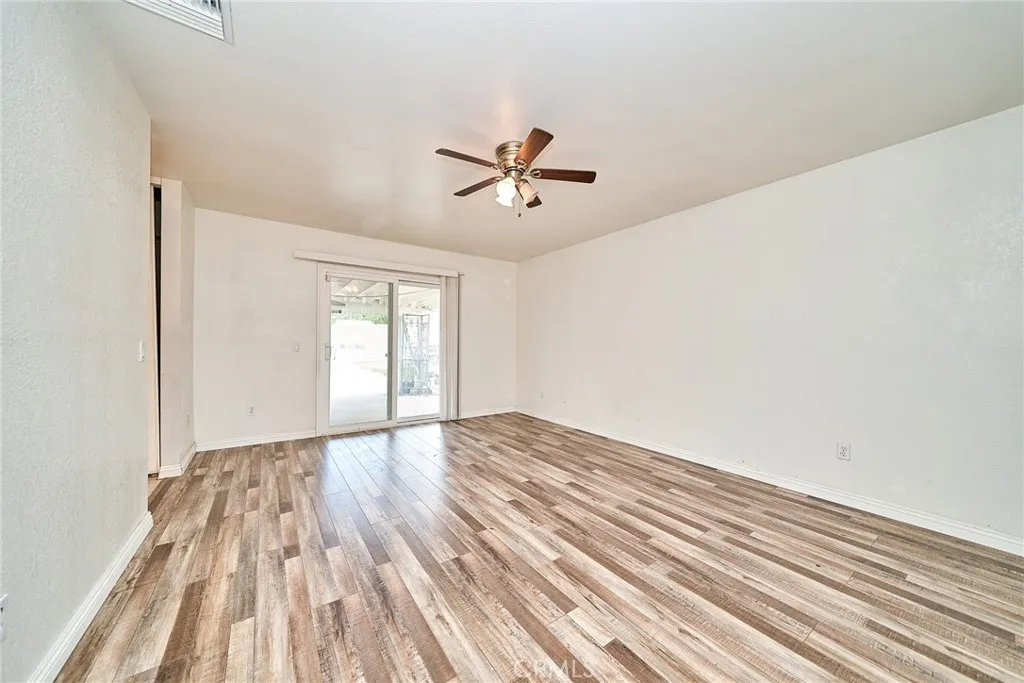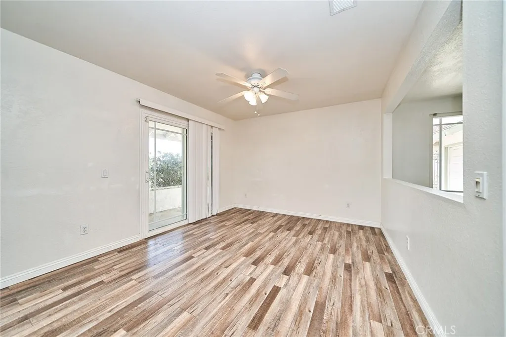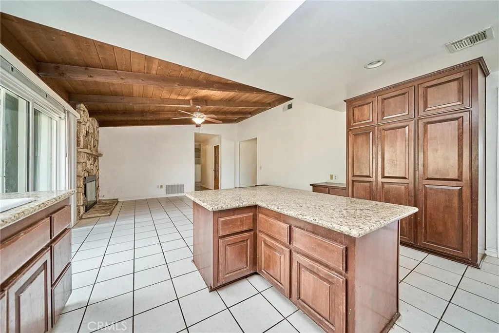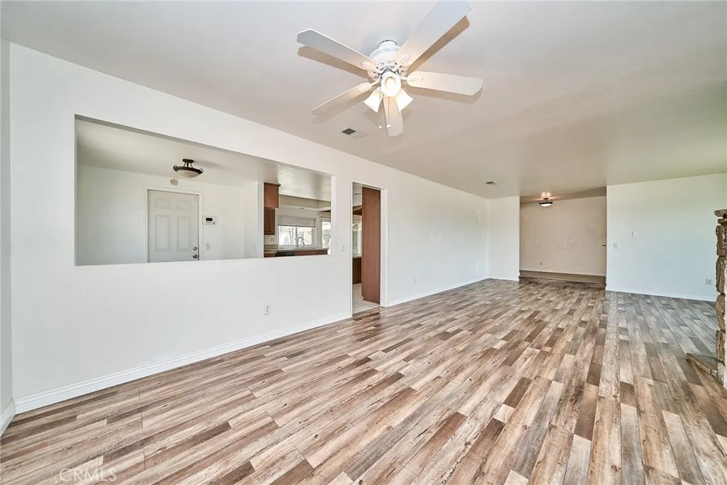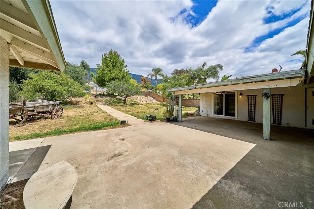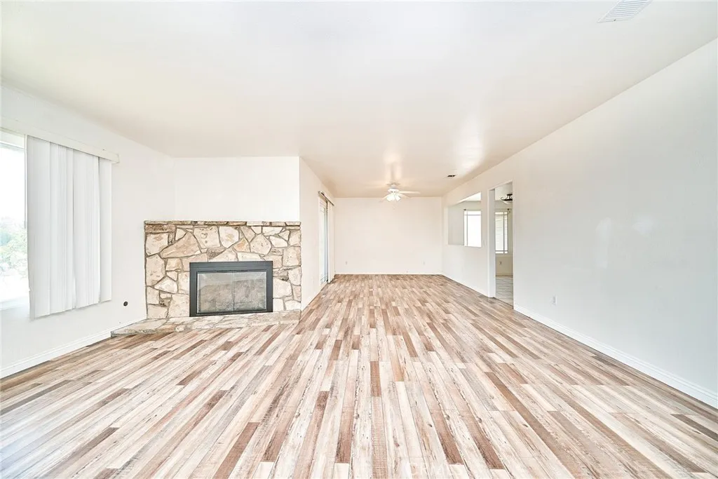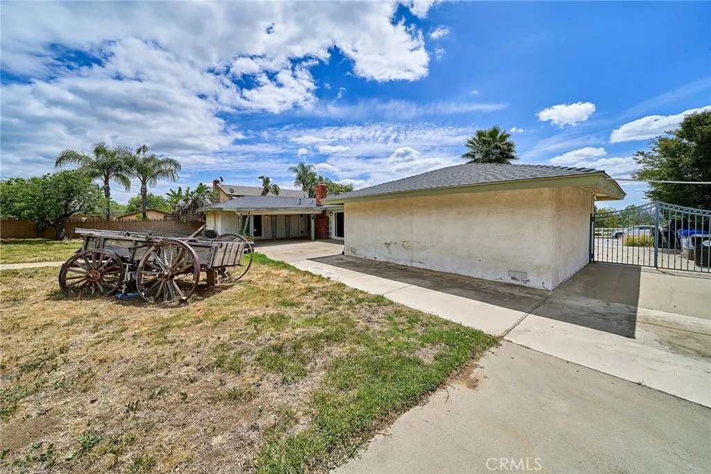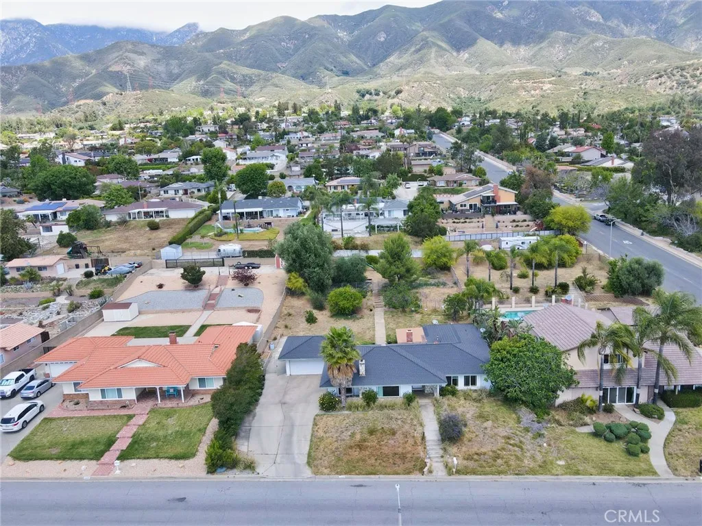This sprawling single-story ranch-style home in Alta Loma is zoned for horses and offers 2,095 square feet of living space, featuring 4 bedrooms and 2 bathrooms. The entryway and living room showcase gleaming wood flooring, while two cozy fireplaces add warmth and charm to both the living and family rooms. The kitchen features beautiful cabinetry, granite countertops, newer fixtures, and a convenient pantry with pull-out shelves. A separate breakfast area and formal dining room—complete with sliding glass doors to a private front patio—provide multiple spaces for dining and entertaining. All four bedrooms are generously sized with laminate floor. The primary suite includes a ¾ bath, dual closets, and sliding glass doors that open to the covered patio. The full secondary bathroom also offers direct outdoor access, ideal for guests or outdoor use. Step outside to enjoy the covered patio, mountain views, mature fruit trees, and grapevines. The expansive lot offers endless possibilities, including space for a pool, sports court, or additional outdoor amenities. A wide side gate provides easy backyard access and potential for RV parking. Located across from Heritage Park, this home also features attractive stone accents, fresh interior paint, and direct access to a bridle trail at the rear of the property—perfect for equestrian enthusiasts