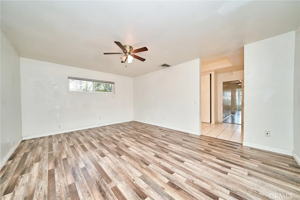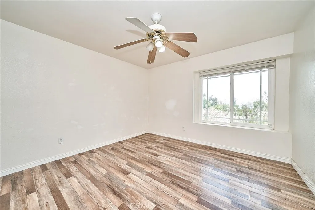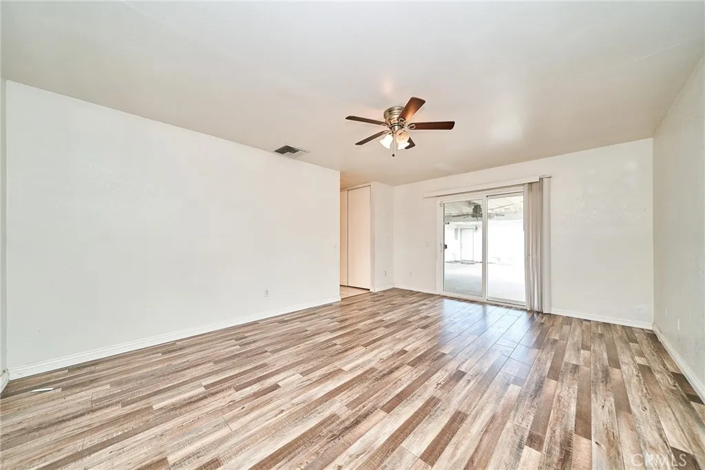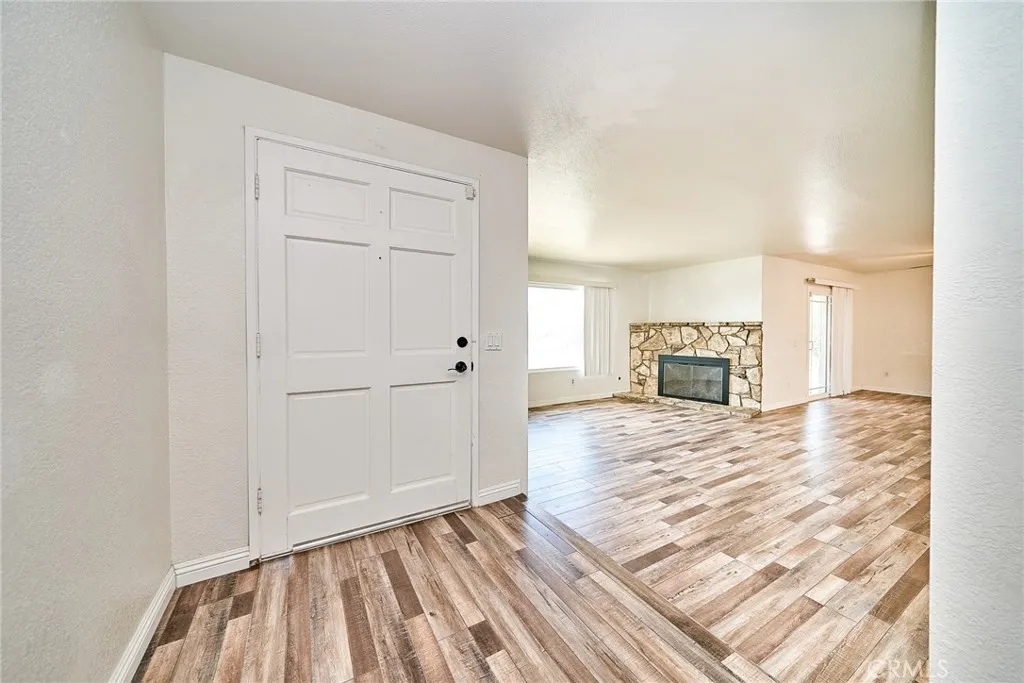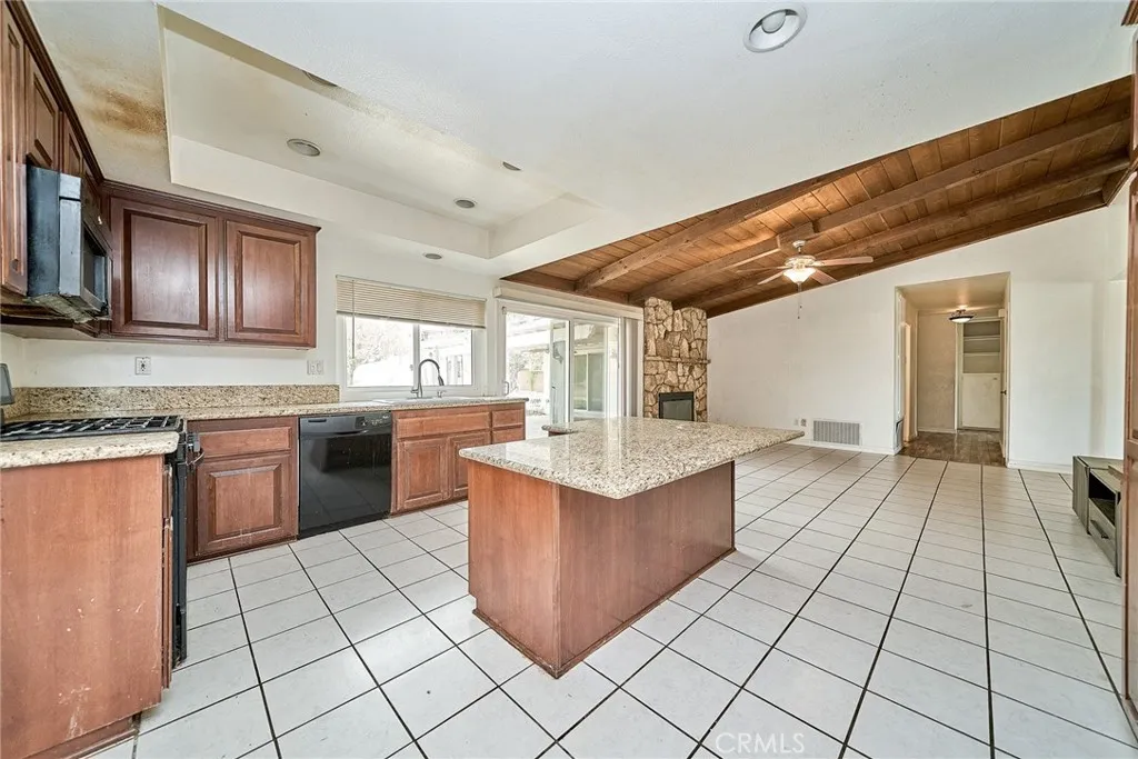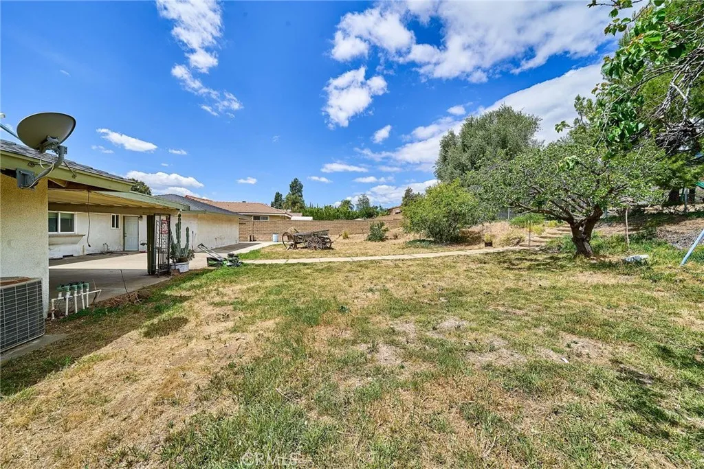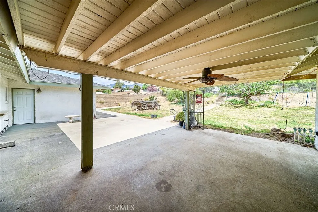 This sprawling single-story ranch-style home in Alta Loma is zoned for horses and offers 2,095 square feet of living space, featuring 4 bedrooms and 2 bathrooms. The entryway and living room showcase gleaming wood flooring, while two cozy fireplaces add warmth and charm to both the living and family rooms. The kitchen features beautiful cabinetry, granite countertops, newer fixtures, and a convenient pantry with pull-out shelves. A separate breakfast area and formal dining room—complete with sliding glass doors to a private front patio—provide multiple spaces for dining and entertaining. All four bedrooms are generously sized with laminate floor. The primary suite includes a ¾ bath, dual closets, and sliding glass doors that open to the covered patio. The full secondary bathroom also offers direct outdoor access, ideal for guests or outdoor use. Step outside to enjoy the covered patio, mountain views, mature fruit trees, and grapevines. The expansive lot offers endless possibilities, including space for a pool, sports court, or additional outdoor amenities. A wide side gate provides easy backyard access and potential for RV parking. Located across from Heritage Park, this home also features attractive stone accents, fresh interior paint, and direct access to a bridle trail at the rear of the property—perfect for equestrian enthusiasts