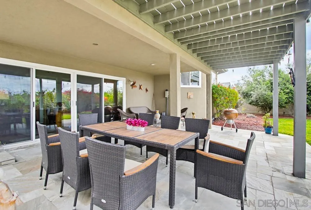 Rare opportunity in the heart of Del Cerro! Beautifully upgraded 6-bed, 3-bath home offering 2,824 sq. ft. of modern living. The expanded chef’s kitchen features stunning Blue Pearl granite,a center island,stainless steel appliances & updated finishes.This large kitchen also offers a charming kitchenette space near the windows,perfect for casual meals.The dining & living rooms showcase soaring vaulted ceilings,creating a bright & open atmosphere.The family room features a cozy fireplace and flows seamlessly to the backyard,ideal for indoor-outdoor living.A convenient main level bedroom & full bathroom provide flexibility for guests or multi-generational living.Expansive windows throughout the home capture beautiful views of Cowles Mountain & the surrounding landscape,bringing in natural light and a connection to the outdoors.Upstairs,the generous primary suite offers a private balcony with breathtaking west-facing views of the mountains,downtown & even the ocean.Additional upgrades include an owned solar system,newer HVAC,updated electrical panel,dual-pane windows w/updated coverings,upgraded balcony,newer kitchen flooring & updated appliances.The backyard is a private retreat with a covered patio and a mature orchard featuring tangerine, lemon, peach, and olive trees,perfect for relaxing or entertaining. Ideally located near Mission Trails Regional Park, this home offers easy access to hiking,nature & outdoor recreation.Enjoy close proximity to top-rated schools, Lake Murray, golf courses,shopping,dining & major freeways,offering the perfect blend of life.