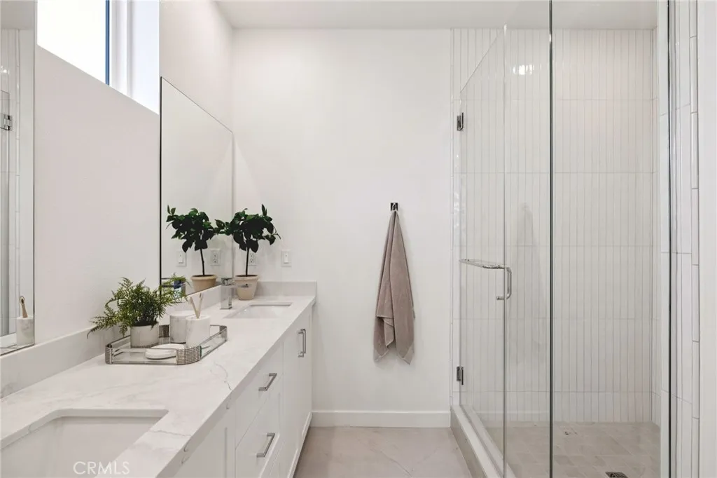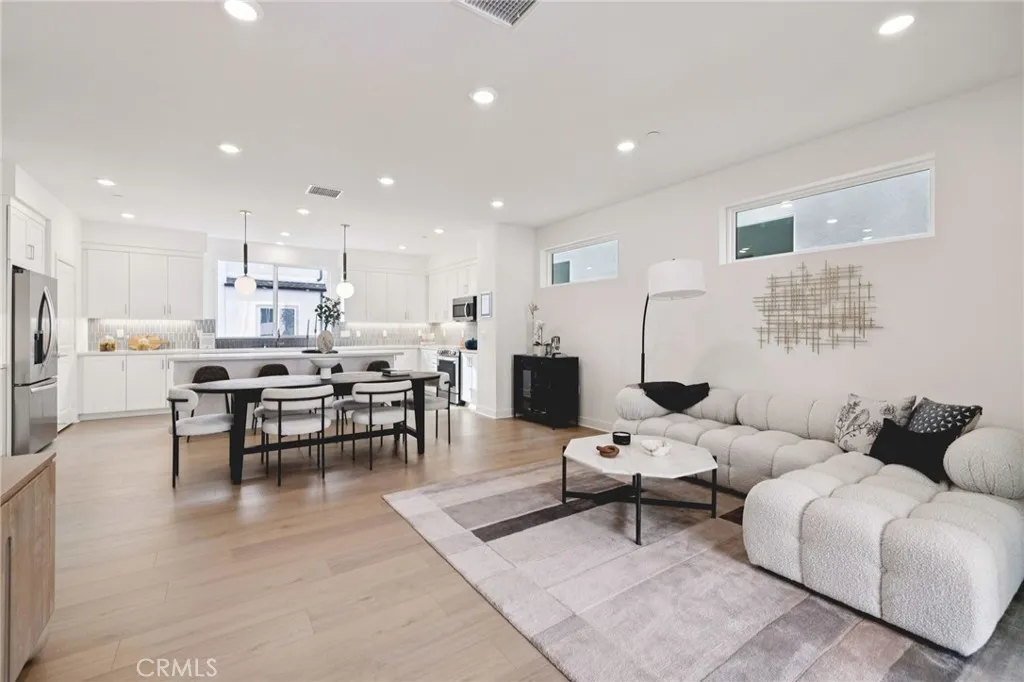 This is a stunning 4-bedroom home with all the upgrades already included. This home features abundant natural light with upgraded flooring throughout, and a junior primary suite on the first floor that can be a flexible space for a home office, guest space, or a dedicated exercise space. An added benefit is a dedicated private area right outside of this bedroom for additional space, storage, or simple relaxation. This gated neighborhood offers a welcoming retreat with resort style amenities. This home includes a must-see kitchen with classic white cabinets, quartz counters, and a fully upgraded backsplash. The open-concept living area is anchored by a stunning multi-slide door that connects the indoors and outdoors. Combining windows that only an end-unit can offer, the home feels bright and airy. The primary bedroom features a vaulted ceiling that makes the room feel grander. Additional energy efficient features of this home include a video doorbell, all-electric appliances, and 220-V in garage ready to adapt for your electric vehicle. Whole house blinds are already included! Interior photos and virtual tour are of model home and not actual home.