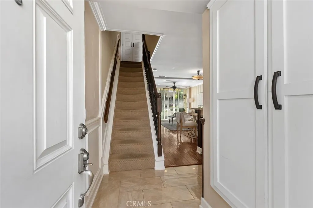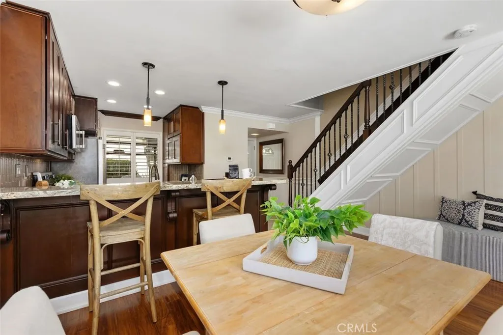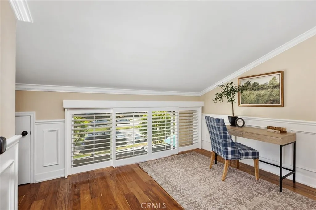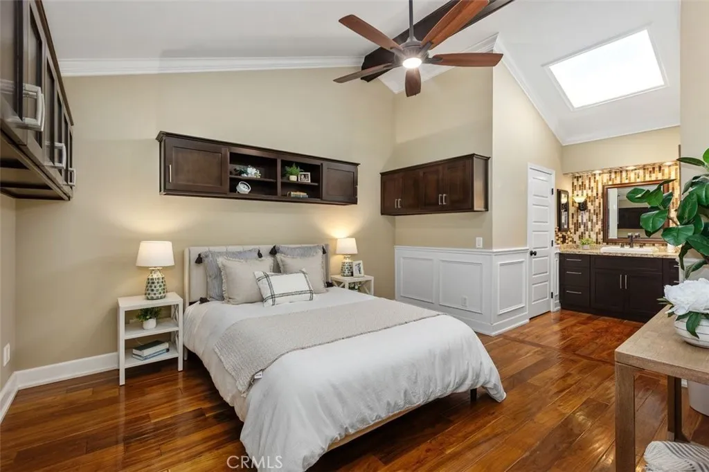 Nicely upgraded 1 bedroom plus office townhome in The Lakes community of Irvine. This 1 bedroom, 1.5 bath home offers a rare upstairs office, private fenced patio, and more than $75,000 in improvements. The remodeled kitchen features granite countertops, stainless steel appliances, updated wood cabinetry, extra storage, floor-to-ceiling pantry space, breakfast bar, pendant lighting, and full porcelain tile backsplash. The main living areas offer hardwood floors, recessed lighting, smooth ceilings, plantation shutters, custom wainscoting, crown molding, paneled doors, and a boxed staircase with wrought iron railing. Ceiling fans upstairs and downstairs add comfort. Upstairs, the vaulted primary suite includes a skylight, walk-in closet with organizer, built-in wall cabinetry, and a remodeled bathroom with granite counters, updated vanity with a modern vessel sink, stacked-stone backsplash, framed mirror, and custom walk-in shower. The separate office adds valuable flex space for work, guests, hobbies, or storage. The private fenced patio, one of only 30 in the community, offers paver hardscape, raised stone planter, mature landscaping, retractable awning, built-in BBQ counter, and permanent gas hookup. Additional features include updated HVAC, partial dual-pane windows, GE stackable laundry, smart thermostat, and designer two-tone paint. The Lakes is known for its streams, mature trees, and scenic surroundings, with community amenities that include pools, spas, tennis courts, and HOA dues that include water and trash service. Conveniently located near shopping, dining, trails, and freeway access. No Mello-Roos and low tax rate.