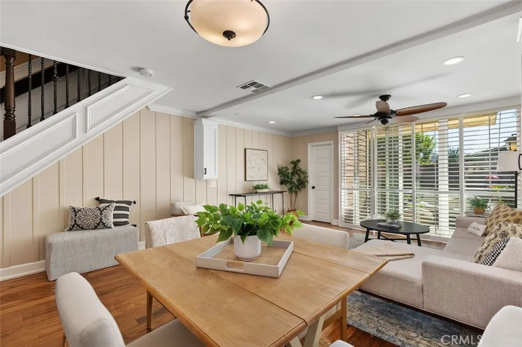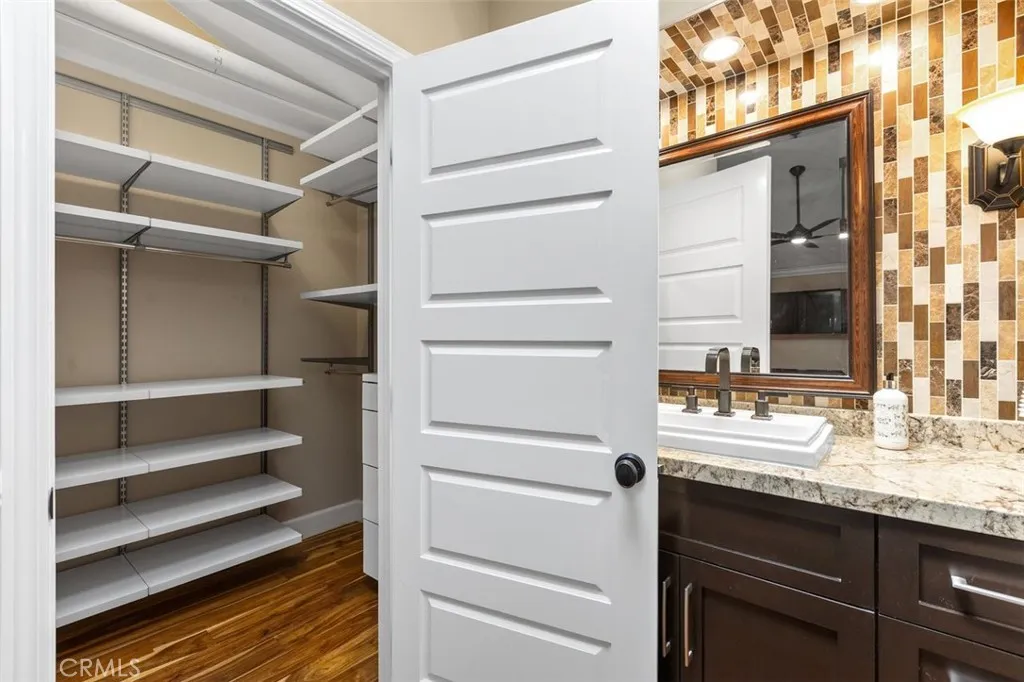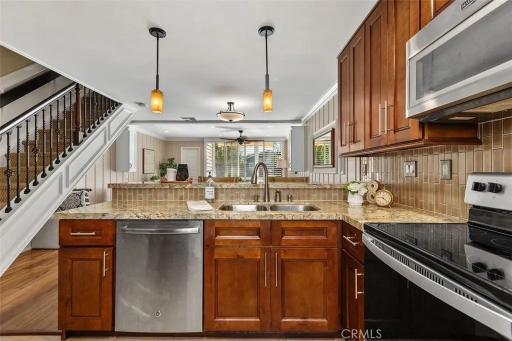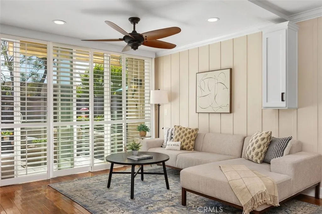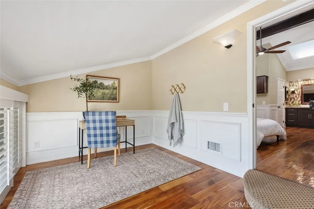 Nicely upgraded 1 bedroom plus office townhome in The Lakes community of Irvine. This 1 bedroom, 1.5 bath home offers a rare upstairs office, private fenced patio, and more than $75,000 in improvements. The remodeled kitchen features granite countertops, stainless steel appliances, updated wood cabinetry, extra storage, floor-to-ceiling pantry space, breakfast bar, pendant lighting, and full porcelain tile backsplash. The main living areas offer hardwood floors, recessed lighting, smooth ceilings, plantation shutters, custom wainscoting, crown molding, paneled doors, and a boxed staircase with wrought iron railing. Ceiling fans upstairs and downstairs add comfort. Upstairs, the vaulted primary suite includes a skylight, walk-in closet with organizer, built-in wall cabinetry, and a remodeled bathroom with granite counters, updated vanity with a modern vessel sink, stacked-stone backsplash, framed mirror, and custom walk-in shower. The separate office adds valuable flex space for work, guests, hobbies, or storage. The private fenced patio, one of only 30 in the community, offers paver hardscape, raised stone planter, mature landscaping, retractable awning, built-in BBQ counter, and permanent gas hookup. Additional features include updated HVAC, partial dual-pane windows, GE stackable laundry, smart thermostat, and designer two-tone paint. The Lakes is known for its streams, mature trees, and scenic surroundings, with community amenities that include pools, spas, tennis courts, and HOA dues that include water and trash service. Conveniently located near shopping, dining, trails, and freeway access. No Mello-Roos and low tax rate.
