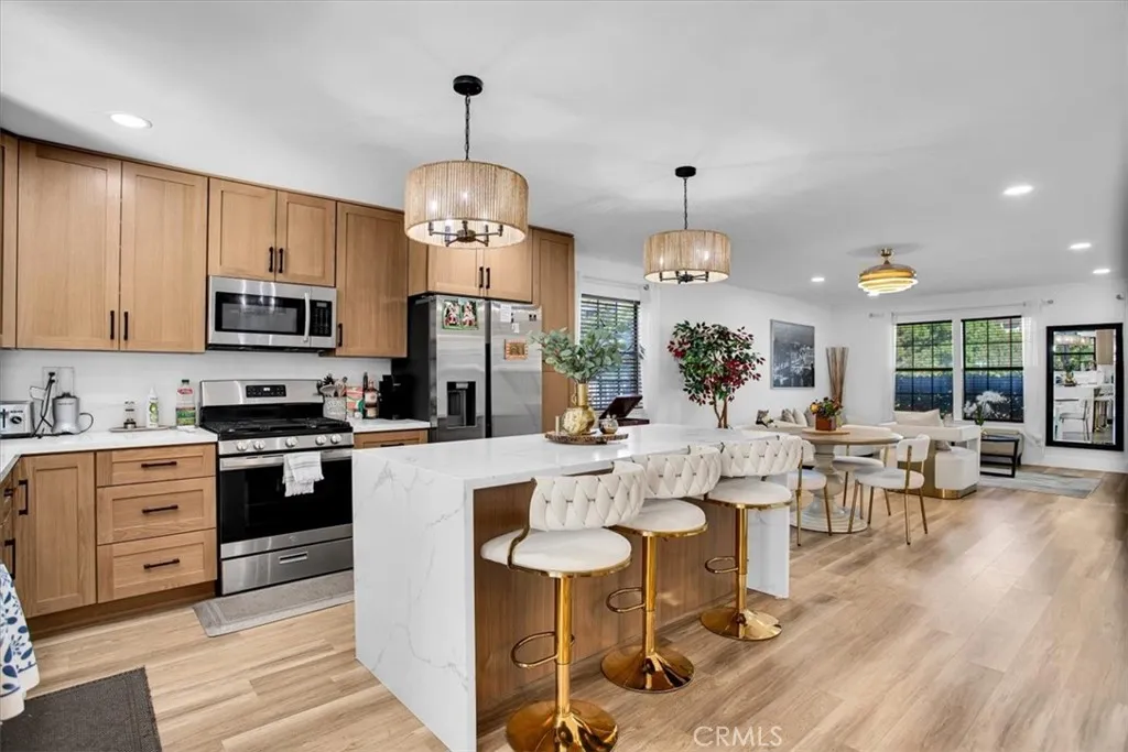 FULLY FURNISHED! Tucked away as one of Jurupa Valley’s true hidden gems, Greens Drive is a residence that effortlessly blends quiet luxury with resort-inspired living. Perfectly positioned along the final hole of the golf course, the home enjoys sweeping, unobstructed views while benefiting from minimal golf traffic—offering a rare sense of privacy and calm. On the opposite side of the neighborhood, the presence of nearby horse properties adds a touch of rustic charm and open, airy surroundings. Spanning approximately 2,200 square feet, this fully remodeled home has been curated with a designer’s eye and is offered completely furnished with high-end pieces that complement its sophisticated aesthetic. Inside, you’re welcomed by new, elegant flooring that flows seamlessly throughout, setting the tone for the home’s refined ambiance. At the heart of the home lies a stunning upgraded kitchen—thoughtfully redesigned with both beauty and functionality in mind. It features premium finishes, modern cabinetry, and quality appliances, creating a space that is as impressive for entertaining as it is for everyday living. The layout is as practical as it is luxurious, with a full bedroom and bathroom conveniently located downstairs, ideal for guests or flexible living arrangements. Upstairs, three additional bedrooms provide comfort and privacy, with select rooms capturing tranquil golf course vistas that feel like a daily escape. Step outside to a beautifully maintained, low-maintenance backyard where a sparkling pool becomes the centerpiece—perfect for relaxing afternoons or stylish gatherings under the California sun. Enhanced by solar panels, the home also offers energy efficiency to match its elevated lifestyle. This is more than just a rental—it’s a rare opportunity to live in a thoughtfully upgraded, turnkey home in one of Jurupa Valley’s most peaceful and sought-after pockets.
