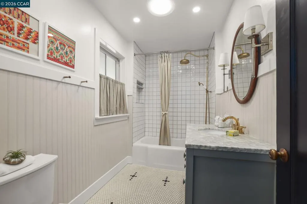 Exceptional waterviews! .59 acres. Waterfront location on private road. Perfect balance of privacy and connectivity. Enjoy the twinkling lights of the iconic Carquinez Bridge, access to East Bay Regional Parks District to enjoy cycling, biking, and hiking trails. Live close to nature without sacrificing urban accessibility. Situated near dining, artist studios, business district, public transportation. Commuters will appreciate the close proximity to major freeways. Centrally located in Contra Costa County. Features and Amenities: 3 bedrooms (includes master), 2 exceptionally updated full baths, Master Bath with spa-inspired, jetted soaking tub, heart of the home updated kitchen, quartz countertops, abundant cabinetry, ss appliances, living room with picture windows allow natural light and views. Cozy fireplace. Step out to front deck, French doors to patio, multi-level landscaped grounds and putting green. Hardwood floors. Spacious laundry room with washer and dryer, cabinetry. Freshly painted in and out, dual pane windows, HVAC. Irrigation system including patio hanging planter watering. Garage parking and off-street parking. Full Basement – flexibility – expansion potential. Includes washer/dryer area, kitchen sink and more! Storage, storage and more storage. Updated electrical and plumbing. Views: Carquinez
