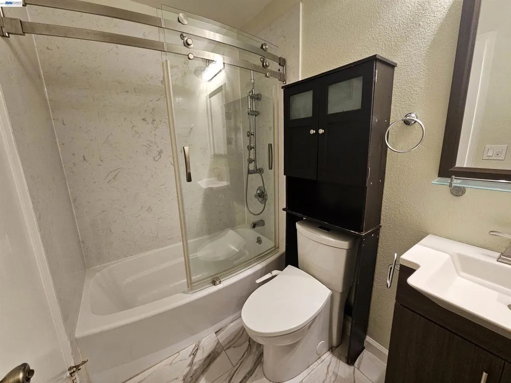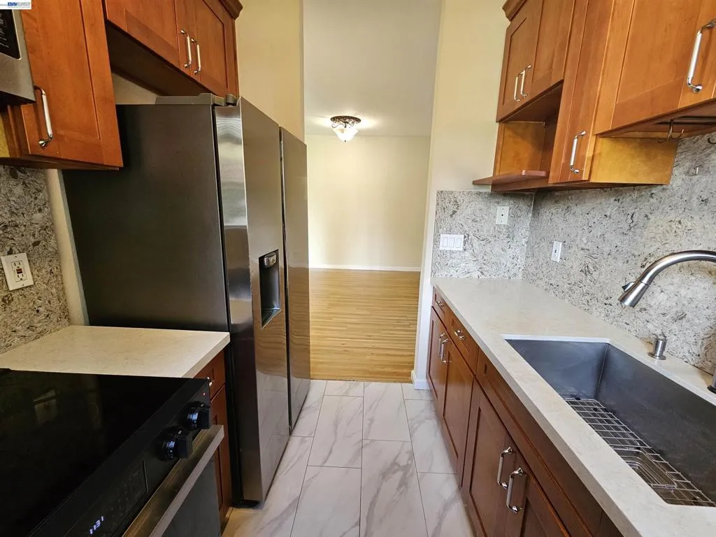 This is it! A corner unit home that is located in the heart of Warm Springs, easy access to I-880/680. Great location close to all amenities for work (TESLA, CISCO, etc.), shopping, restaurants, parks, public transportation and to excellent schools. It has good ceiling height for great air flow and natural light. Modern open floor plan in the family and dining area. Wonderful granite counter kitchen with stainless steel appliances, including a convenient in unit washer and dryer. The 2 spacious bedrooms are perfect for quiet relaxation while the bathrooms are finished with designer vanities. Easy care with its tile and laminate flooring. Spacious greenbelt for play and walking at the back of patio. (1) enclosed detailed parking and additional (2) assigned uncovered parking spaces. Don't miss this chance before it's gone!