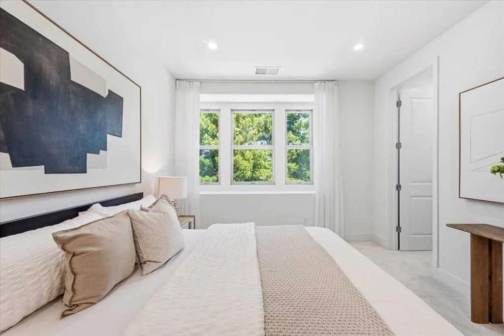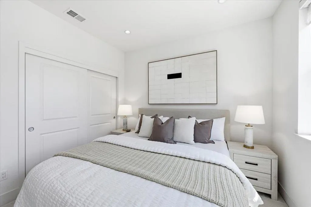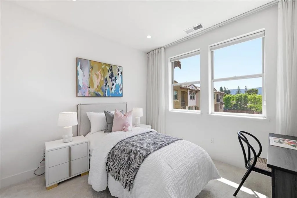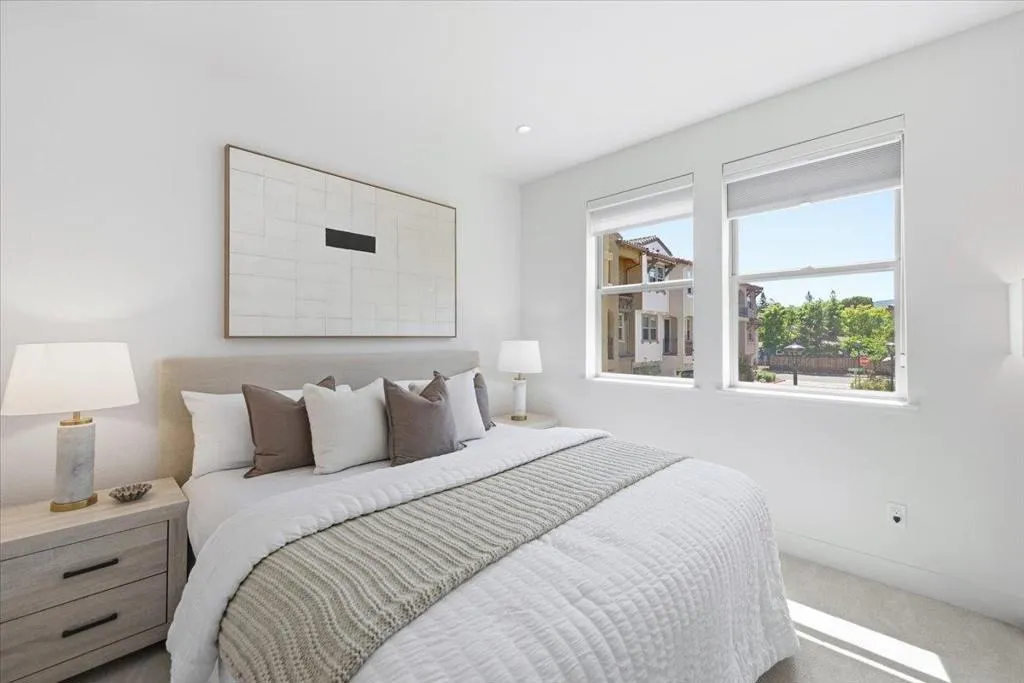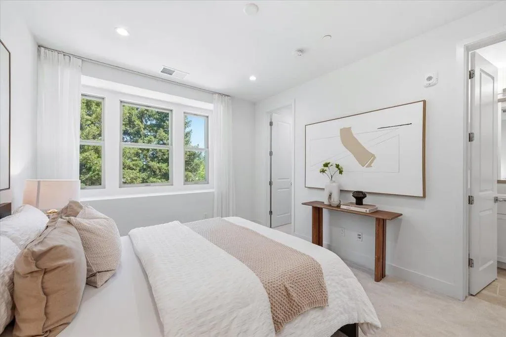 Northeast-facing and beautifully upgraded, luxury living in Mountain View! Built in 2024, this stunning home features a bright, open great room with high ceilings, recessed lighting, and triple-pane windows for natural light and quiet comfort. The gourmet kitchen was fully upgraded with stainless steel appliances, white custom cabinetry, and quartz countertops. A desirable second-floor bedroom with full bath offers flexibility for guests or a private office. Upstairs, the spacious primary suite includes a walk-in closet and a luxurious dual-vanity bath, plus an additional guest suite. Additional highlights include central A/C & heating, Diamond Wood flooring, indoor high-end LG® washer/ dryer set, fully owned solar panels, and an attached 2-car garage pre-wired for EV. Ideally located on the border of Palo Alto and Los Altos with access to top-rated schools including Crittenden Middle School, and Los Altos High School. Enjoy easy access to Hwy 85, 101, and Central Expy, 7 Minutes Bike to Google, 8 Minutes Drive to Intuit, LinkedIn close to Microsoft, Meta, plus Caltrain, VTA, parks, and vibrant downtowns. Low HOA covers exterior, roof, landscaping, insurance, and greenbelt with gazebo & BBQ. Welcome to your future home!