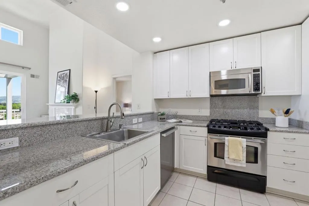 Perched in the single best location in the Rivermark community, this stunning two-bedroom, two-bath penthouse residence offers a view that stops people mid-sentence. To the east, the Mt. Diablo Mountains rise in full, unobstructed glory. Below, the Guadalupe Trail and river wind through a ribbon of green that changes beautifully with every season. Every room frames the Mt. Diablo Mountain range. Wake up to it. Cook with it in view. Wind down with it at dusk. The kitchen is fully updated with modern appliances and smart finishes, but honestly, the mountains make it unforgettable. Step outside your door and the community delivers. An Olympic-sized pool, a proper fitness center, and a private 18-seat movie theater. Your two garage spaces sits literally right next to the elevator, EV charging is on-site, and Rivermark Village puts great dining and shopping within a short walk. Every Thursday, a farmers market sets up right at your front entrance. As for location, few addresses in Silicon Valley carry this kind of weight. Google, Meta, NVIDIA, and ServiceNow are all expanding in the immediate area, making this not just a beautiful place to live, but a genuinely smart one. The mountains. The river trail. The penthouse views. The life. It is all here. Are you ready for this?