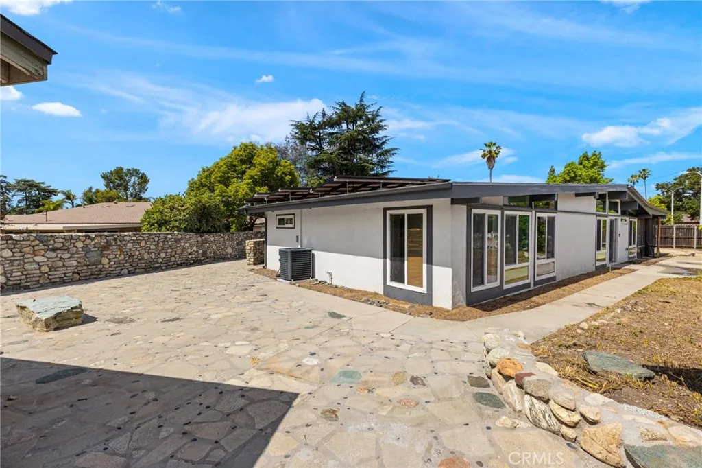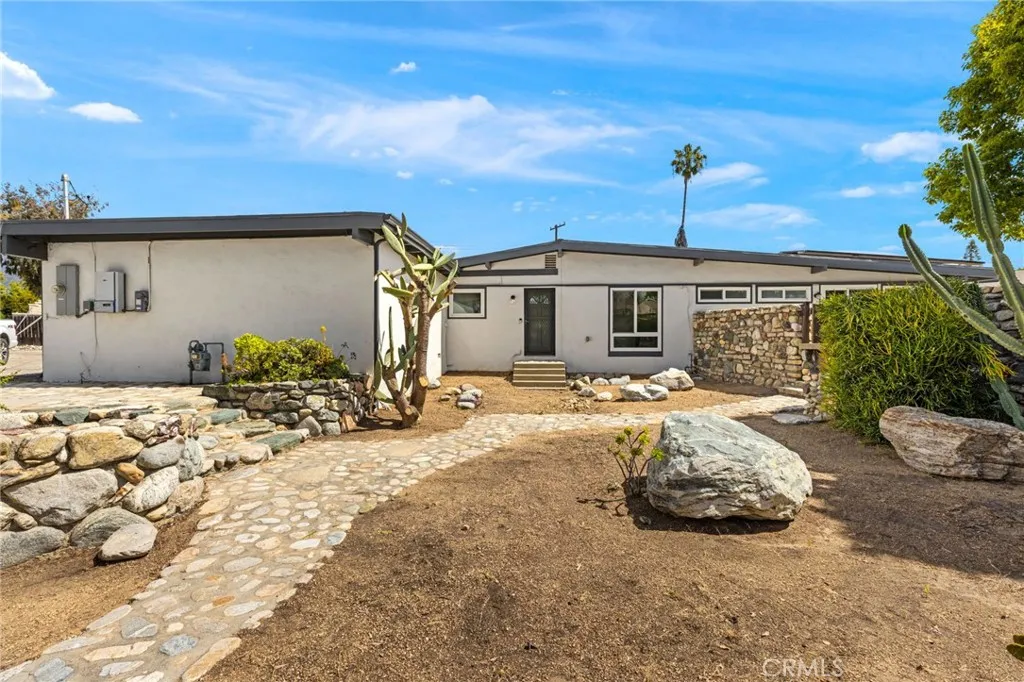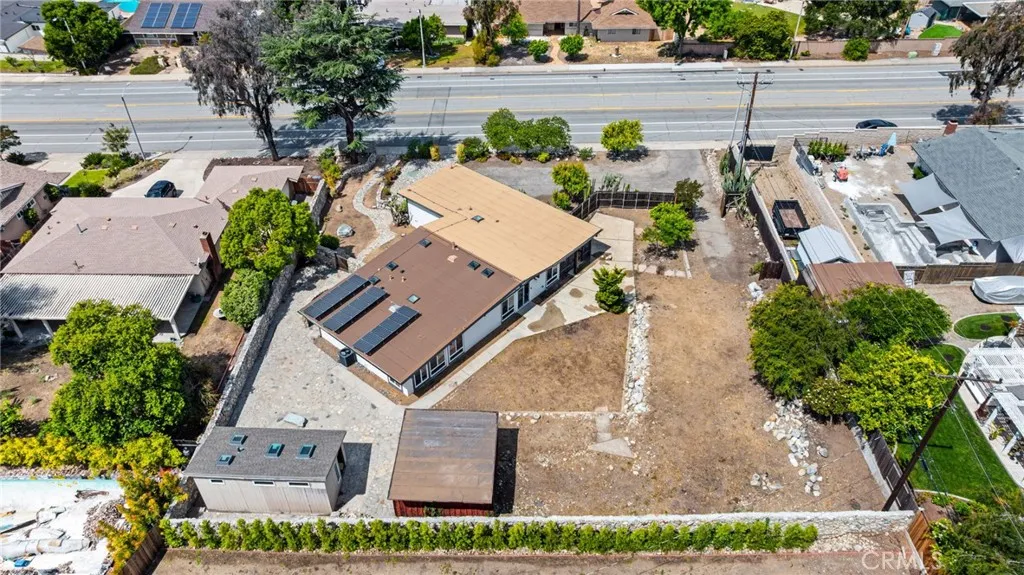 Stunning Contemporary home with Magnificent Ceilings and Beautiful Hand Restored Beams, set on a Very Large Lot. Several outer Structures complete this truly unique property. Sunlight fills the rooms of this home and creates a warm and inviting atmosphere. New Electrical wiring, LED & Recessed lighting, NEST Heat & Air, new ducts, Newer Roof, 3.5 KW Solar panels all paid no lease, windows, New beautiful, remodeled bathrooms. Skylights in many rooms. The property invites imagination, a canvas ready for floorings, paint etc. It is a tranquil sanctuary surrounded by nature. Amazing rock walls and rock features that surround the property. Two car garage that could possibly accommodate 3 cars or a large workshop. Space is there and ready for a dream kitchen. So many windows and views from all into private outdoor spaces. Two outside structures, one another workshop or storage. The other could be possibly completed as a ADU or extra office. Many Fruit trees, Pomegranate, Lemon, Grapefruit and Prickly Pear. Very close to Elementary school and Claremont Colleges. So many possibilities!