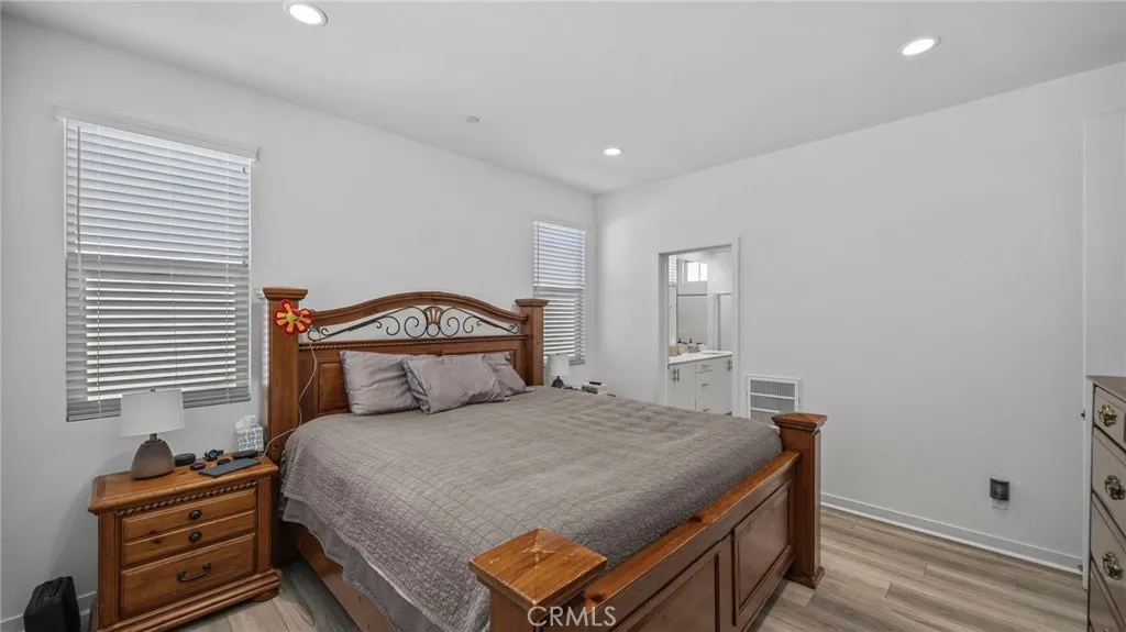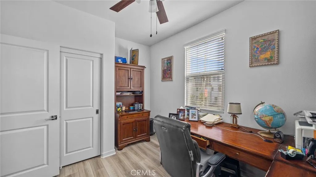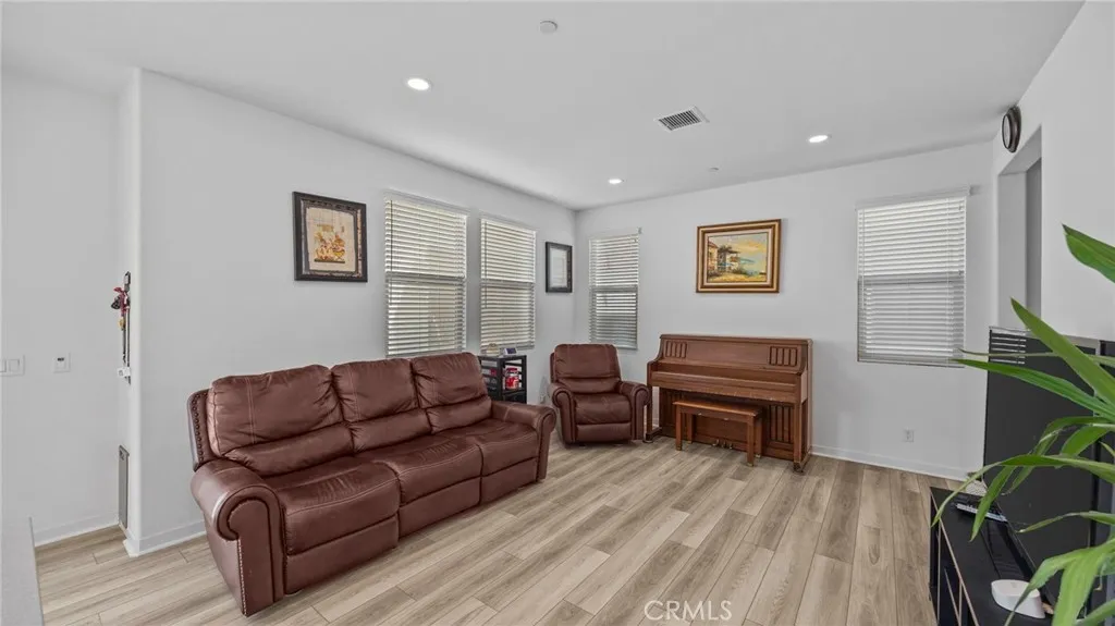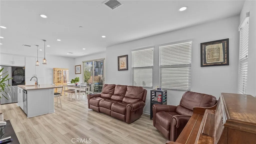 Welcome to this beautifully upgraded detached home in the highly sought-after Chino Preserve! Situated on a large corner lot, this residence offers exceptional privacy with no shared walls and an extra-large landscaped backyard—perfect for entertaining or relaxing outdoors. Step inside to discover upgraded flooring throughout, elegant quartz countertops, a stylish subway tile backsplash, and satin nickel handle pulls in the kitchen and bathrooms. The kitchen is complete with a white cast iron double bowl sink and modern finishes, creating a sophisticated yet functional space. The thoughtfully designed layout includes a privacy door at the primary suite, ensuring a secluded retreat. Enjoy rain glass shower doors in two of the three bathrooms, offering both elegance and privacy. Additional features include wood blinds throughout, LED recessed lighting with a smart dimmer switch, and ceiling fans for added comfort. With a 2-car garage and just steps away from the community amenities, this home delivers both convenience and luxury. Don’t miss this incredible opportunity to own a beautifully upgraded home in The Preserve at Chino!