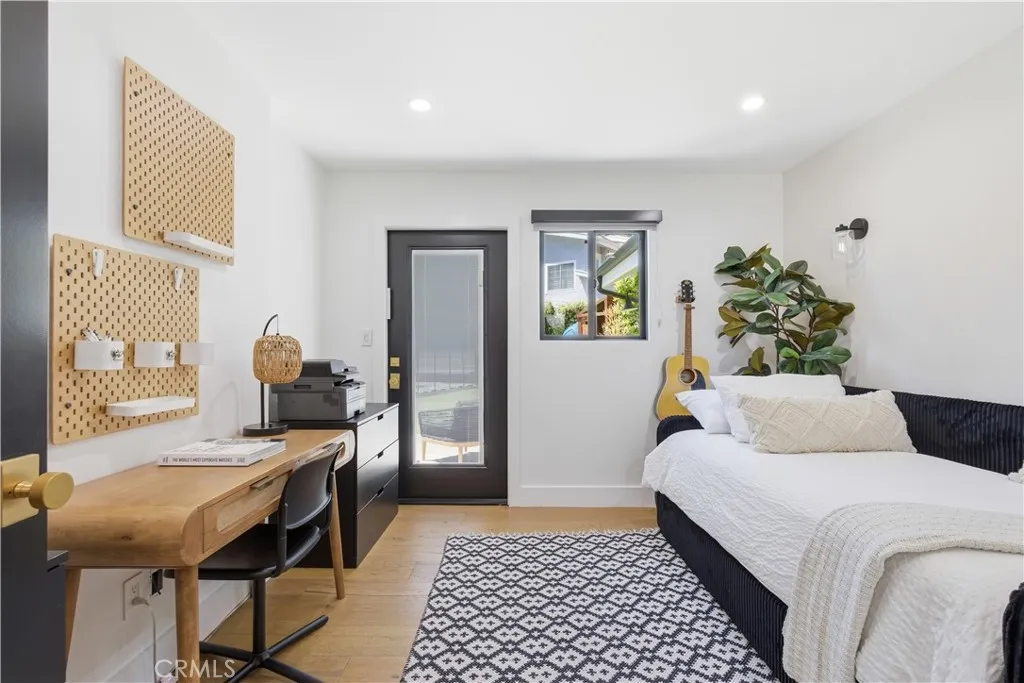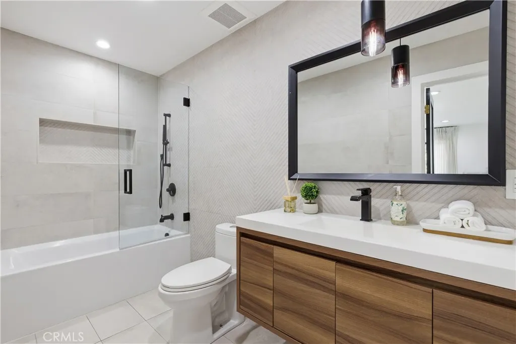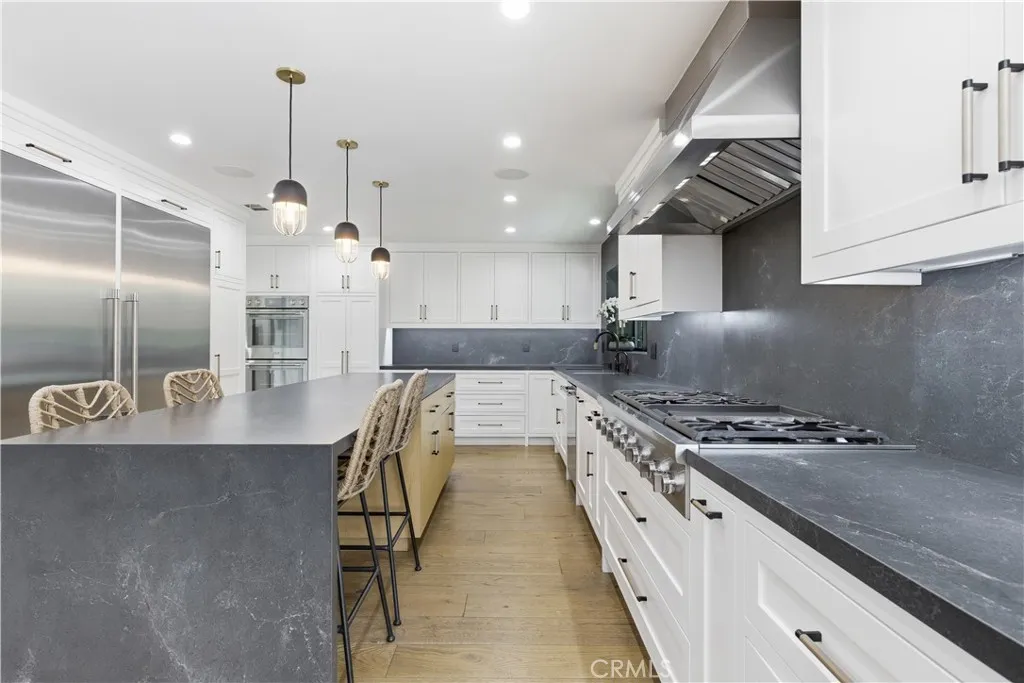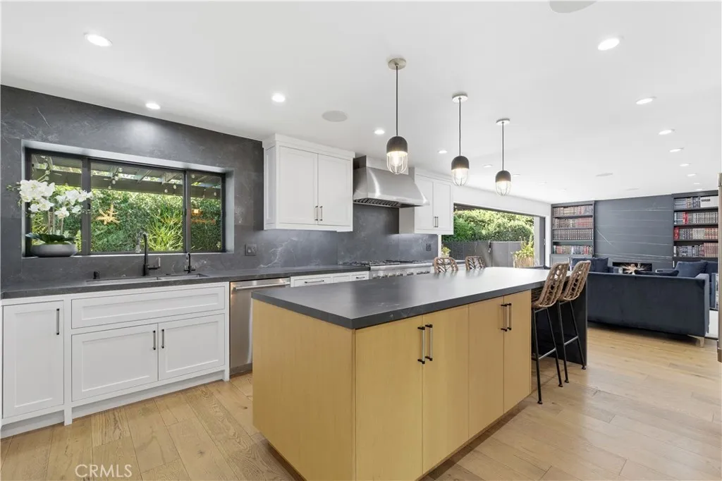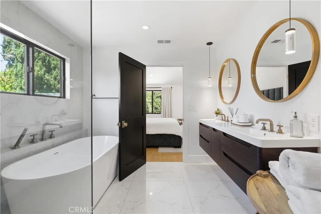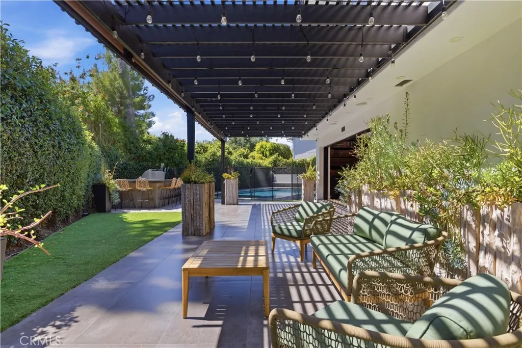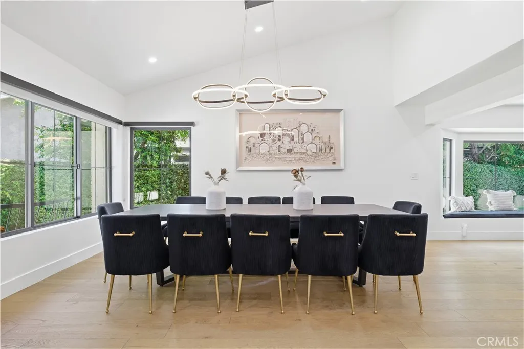 Tucked away on a private cul-de-sac in the heart of Sherman Oaks, this stunning, newly reimagined residence offers the perfect blend of modern luxury and effortless California living. Spanning over 3,000 square feet plus an additional 700 sqft of bonus space, on an expansive nearly 9,000 square foot lot, this 6-bedroom, 4-bathroom home is thoughtfully designed with exceptional attention to detail and style. A striking curb appeal welcomes you with clean architectural lines, and manicured landscaping. Inside, soaring ceilings and wide-plank wood floors set the tone for the light-filled, open-concept layout. The formal dining area flows seamlessly into the living spaces, highlighted by designer lighting and a dramatic staircase. The stunning kitchen is a true centerpiece, featuring custom cabinetry, sleek stone countertops, high-end stainless steel appliances, and an oversized island perfect for gathering. The home offers incredible versatility with three bonus rooms—ideal for a home office, gym, media room, or playroom—allowing you to tailor the space to your lifestyle. A glass enclosed wine display adds a sophisticated touch, while multiple living areas provide both comfort and functionality. Upstairs, spacious bedrooms include a luxurious primary suite retreat with a spa-inspired bathroom, soaking tub, dual vanities, and generous walk-in closet. Each additional bedroom is well-appointed with ample natural light and modern finishes. Step outside to your private park and luxurious oasis, designed for both relaxation and fun. Enjoy seamless indoor-outdoor living with large sliding doors opening to a covered patio, outdoor lounge, and built-in BBQ area. The sparkling pool and spa are complemented by lush greenery, a dedicated play area, in ground trampoline and plenty of space to host family and friends. Located in a prime Sherman Oaks neighborhood, this exceptional property combines privacy, scale, and sophistication—offering a rare opportunity to experience elevated living in one of the Valley’s most desirable settings.