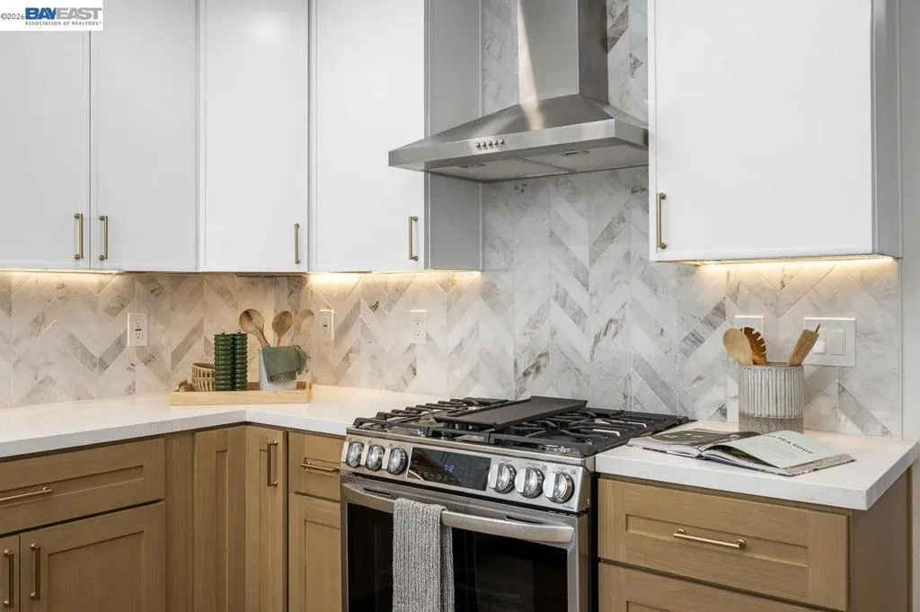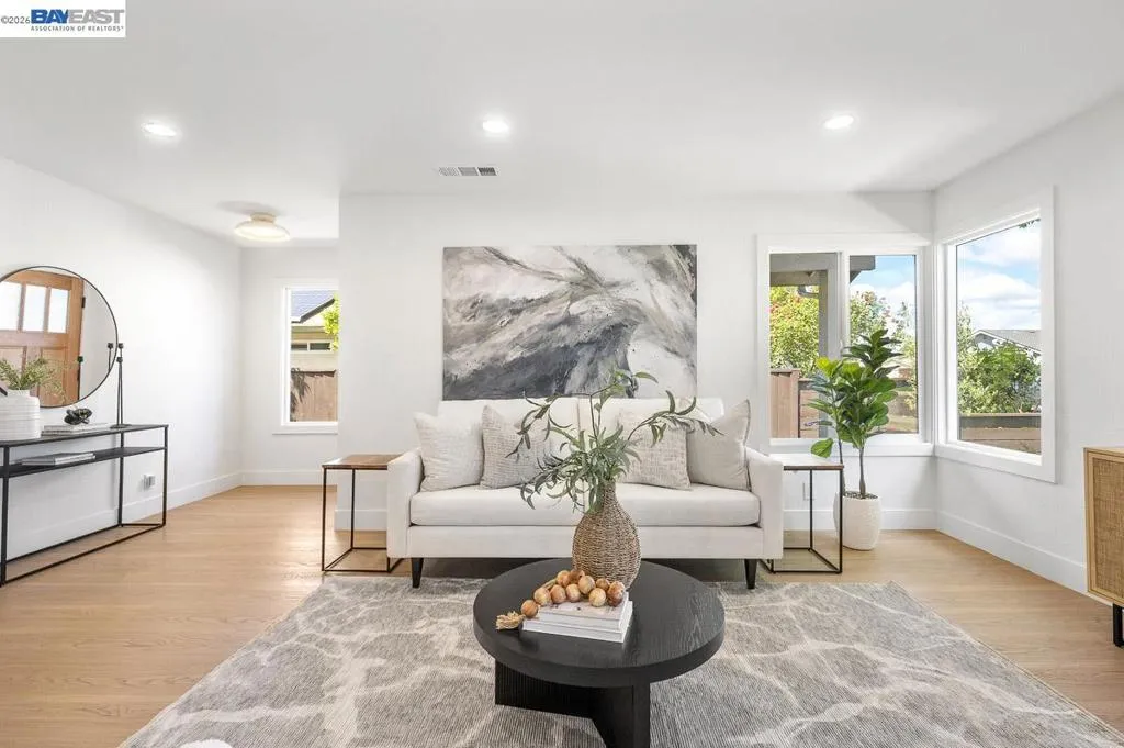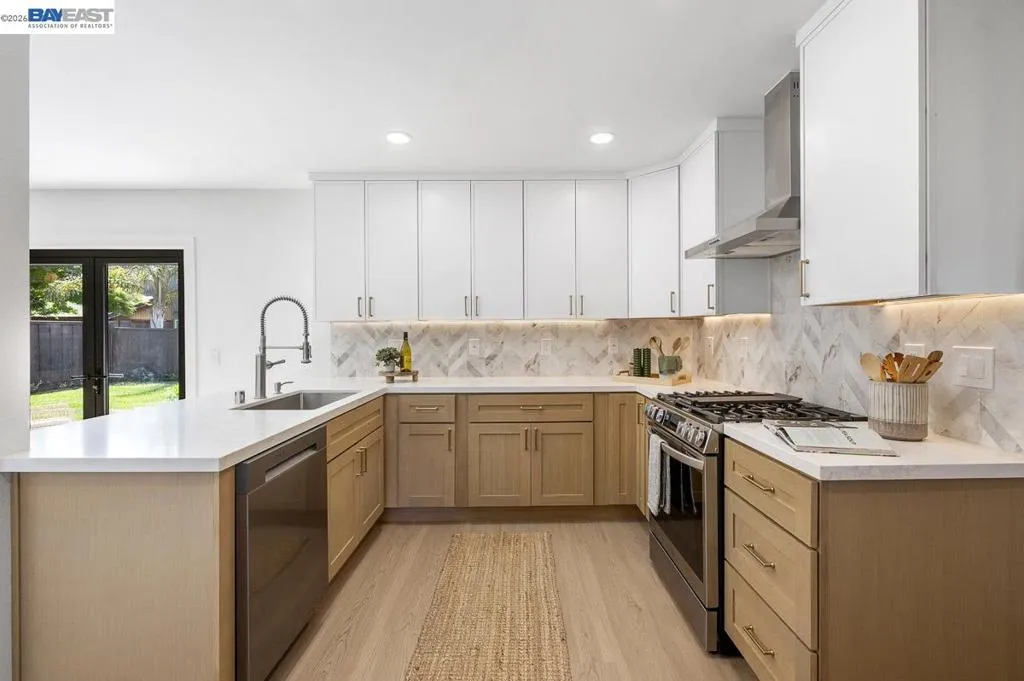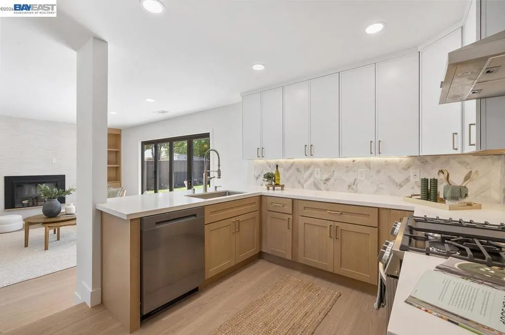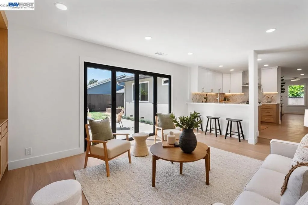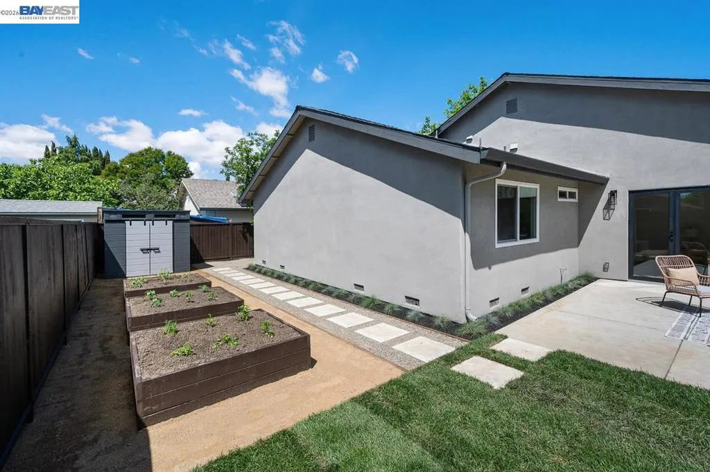 Welcome to your Foreverhome at 5569 Haggin Oaks Ave, the kind of place where real life settles in and stays awhile. Tucked into Greenville North, one of Livermore's quieter pockets (and a quick hop to Vasco), this single-family home has been fully reimagined inside and out. Start with the basics done right: new roof, fresh landscaping on automatic irrigation, and a front facade that turns heads without trying too hard. Step inside and the story really gets good. The kitchen is the heart of it. White oak, thin-framed shaker cabinets. Quartz counters. A chevron marble backsplash that pulls the whole room together. All-new appliances, so the kitchen works as good as it looks. In the family room, a new electric fireplace with custom built-in cabinetry anchors the space. A 10-foot aluminum bi-fold accordion door folds away entirely, turning the family room and backyard into one seamless space. Morning coffee on the patio or evening dinners that spill outside without anyone getting up to open a door. It's all on the table now. Out back, a new concrete patio, raised garden boxes with their own irrigation (hello, homegrown tomatoes), and a shed for the extras round out a yard built for slow weekends and busy ones alike. Fully remodeled bathrooms, new LVT flooring throughout, and thoughtful upgrades tying it all together mean this isn't just move-in ready. It's live-in ready. The kind of home where you unpack once, plant your garden, and let the good stuff happen. Welcome home.