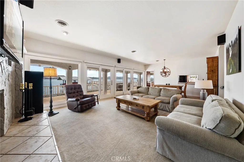 Beautiful Buckingham LAKEFRONT Retreat – Private End-of-the-Road Location !!! Nestled in one of Lake County’s most desirable areas, this spacious 4-bedroom, 3-bath lakefront home offers stunning views of the LAKE AND MOUNTAINS and offers exceptional privacy at the quiet end of the road. The family-style, eat-in kitchen, open concept dining room, and inviting living room with a fireplace provide the perfect setting for gatherings. A wall of glass windows frame sparkling LAKE views, while upgraded window coverings add style and comfort. One bedroom is conveniently located downstairs, with three more bedroom upstairs, each filled with natural light. The main-level bathroom has been recently remodeled with tasteful finishes. Interior upgrades include a dual-level energy efficient AC/Heating system and a new water heater, premium double pane windows/sliding glass doors. Exterior has significant upgrades, including a replaced roof, durable stucco finish for long lasting beauty and very low-maintenance grounds. Expansive outdoor areas are ideal for BBQs, entertaining, or simply relaxing by the LAKE. An extra-large , fully lit 10' x 80' pier leads to a deluxe boat dock facility featuring two covered boat lifts with steel pile supports, individual electric lifts with remote controls, plus an independently operated jet ski lift. A two-car attached garage offers ample storage, with additional outdoor space for parking boats and lake toys completes the package. Low cost HOA fees include access to the clubhouse, boat launch, private marina, golf course. This home offers comfort, modern upgrades, and the ultimate lakefront lifestyle in the sought after Buckingham location. Impeccably maintained , with pride of ownership is evident throughout. (age,sqf,property lines, not verified by agents/Tax records show 3 bedrooms)