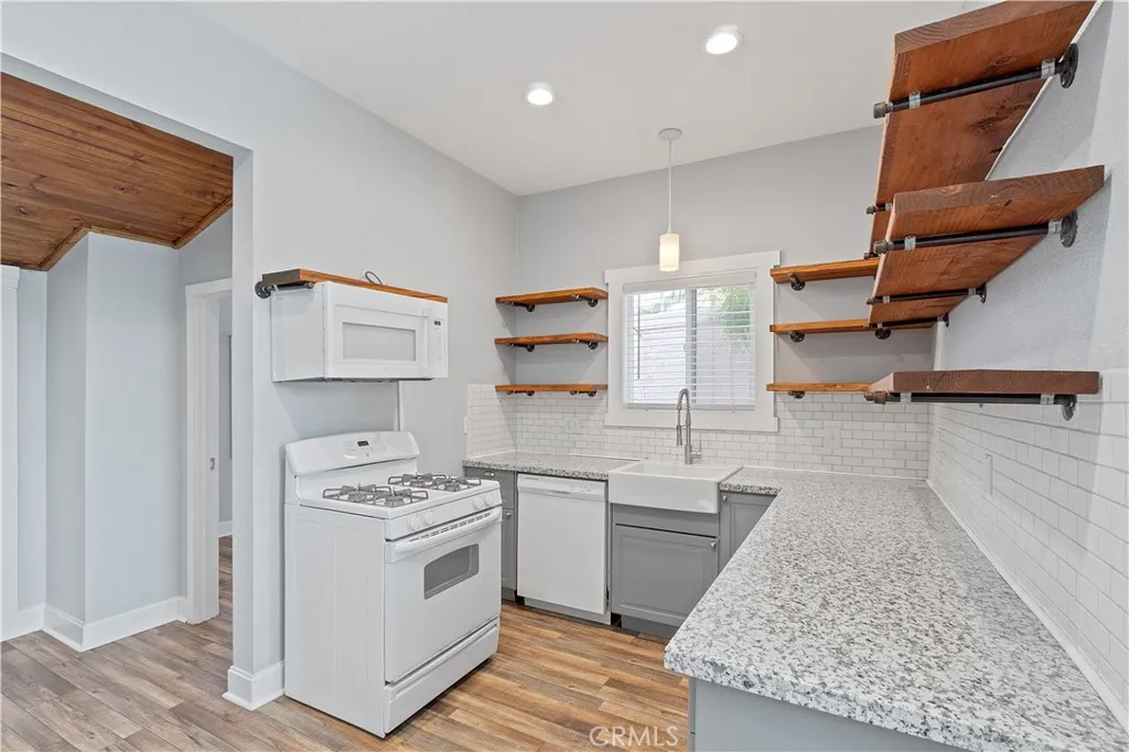 Charming 2-Bedroom Downstairs Apt Near Downtown Riverside! Living Room and Kitchen which includes Stove/Oven (gas), Refrigerator, Microwave, and Dishwasher. Vinyl Plank Flooring throughout the apartment, Window AC Unit, and Wall Furnace. Shared Coin-operated Laundry Facilities On Site, and a Front Deck and Shared Fenced Backyard Area. Street Parking. Water and Gardening are Provided! Will consider 1 Cat.