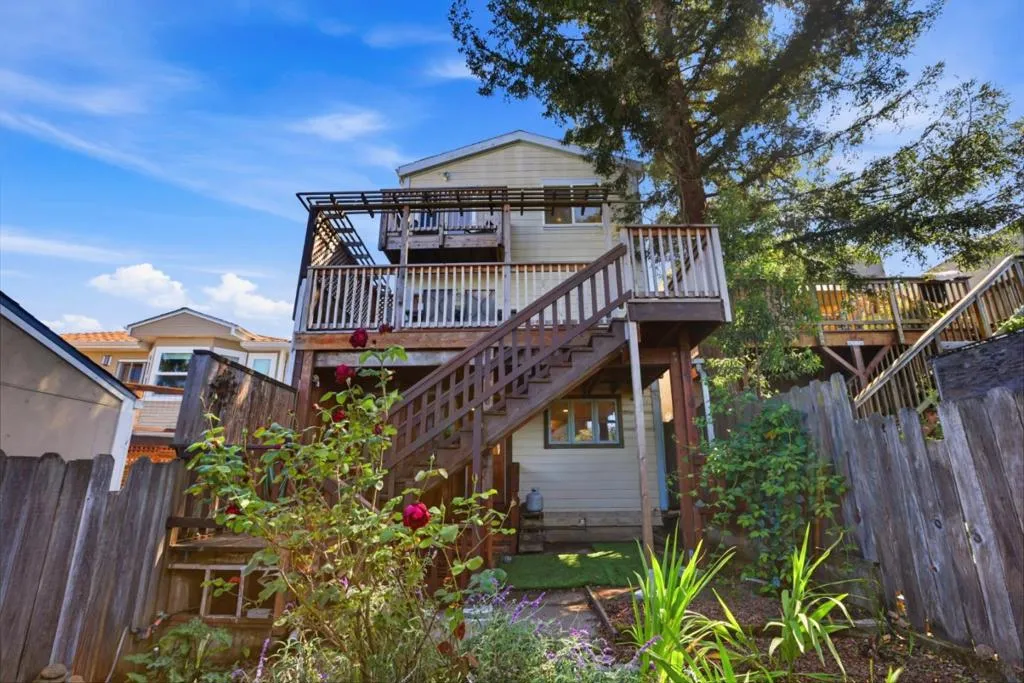 Welcome to 348 Mendocino Street! A bright and welcoming home offering 3 bedrooms, 3 bathrooms, and approximately 1,433 square feet of thoughtfully designed living space. Featuring a light-filled living and dining area with warm wood floors that connect effortlessly to an open kitchen, making it perfect for both daily living and entertaining. Upstairs there is a generous primary suite that provides a peaceful retreat, complete with a private deck perfect for relaxing or enjoying morning coffee. The versatile lower level includes an in-law unit, offering flexibility for guests, extended family, or potential rental income. A charming front courtyard creates a warm first impression, while the lovely backyard and deck boast scenic views, perfect for gatherings or peaceful evenings outdoors. Additional highlights include a sauna for added comfort and relaxation. Ideally located in the sunny town of Brisbane, this home is within walking distance to local shops, restaurants, parks, and highly regarded schools. With convenient access to transportation, and just minutes from San Francisco and the airport, this property combines comfort, versatility, and an exceptional location. You won't want to miss it!