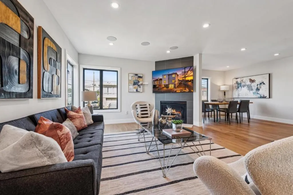 Gorgeous & Exceptional! Wake up to breathtaking ocean views from your primary suite in this beautifully renovated 6BD/4BA tri-level Outer Sunset residence, ideally located just moments from Ocean Beach & SF Zoo. This smart home is pre-wired for data & video & features Nest thermostats, smart lighting, EV charging, & a fully paid Tesla solar system for energy efficiency & backup powerwall. Open-concept floor plan showcases white oak flooring, expansive windows, & skylights with lots of natural light. Chefs kitchen is a true centerpiece, appointed with a Miele gas range with pot filler, wine chiller, sleek modern cabinetry, & quartz countertops. Living area is highlighted by LED lighting, in-ceiling sound system, & gas fireplace. Bathrooms feature heated Porcelanosa tile floors, Grohe fixtures, stone vanities, & glass-enclosed showers. This home offers 3 levels with 2 separate entrances, perfect for multi-generational living/guests. Lower level includes its own entrance & strong rental potential, previously generating $4K-$5K/mo from short term rental. Additional upgrades include electrical/plumbing improvements. Near Ulloa Elementary within SFUSD, park, Lake Merced, & bus. A rare opportunity to own a versatile, high-tech coastal home with exceptional lifestyle & income potential.