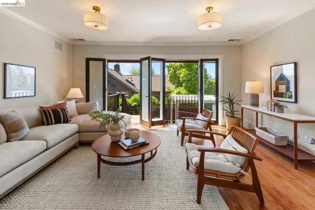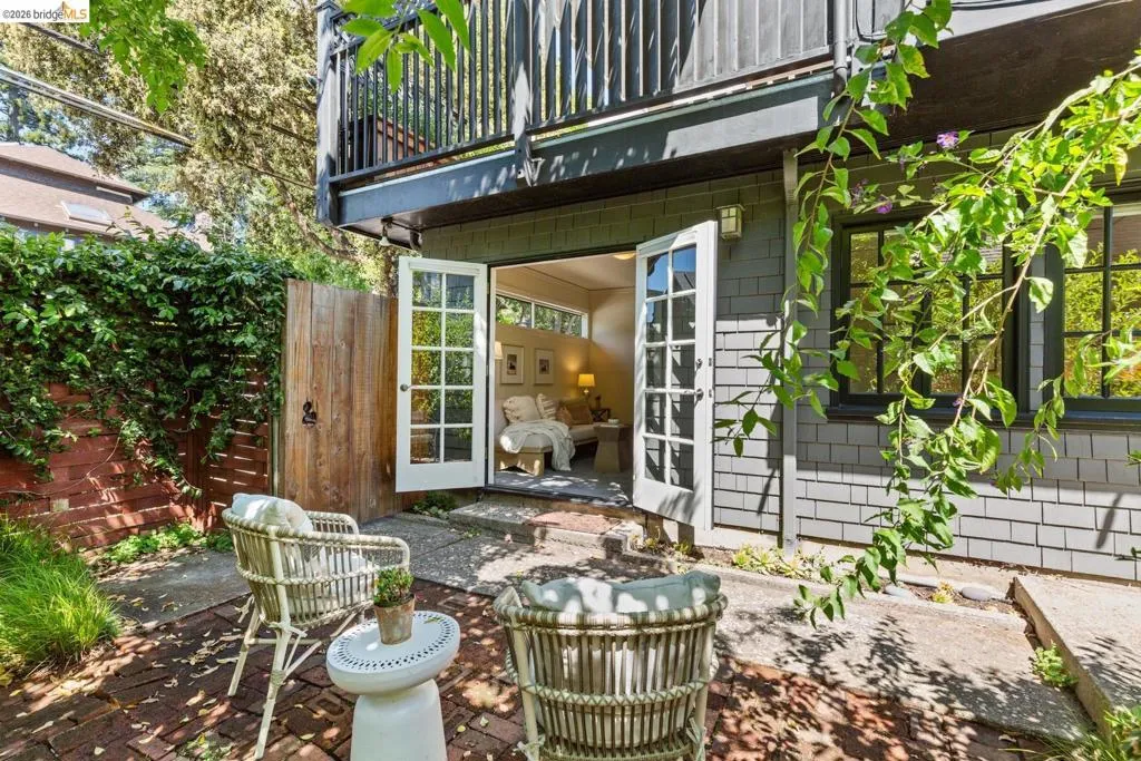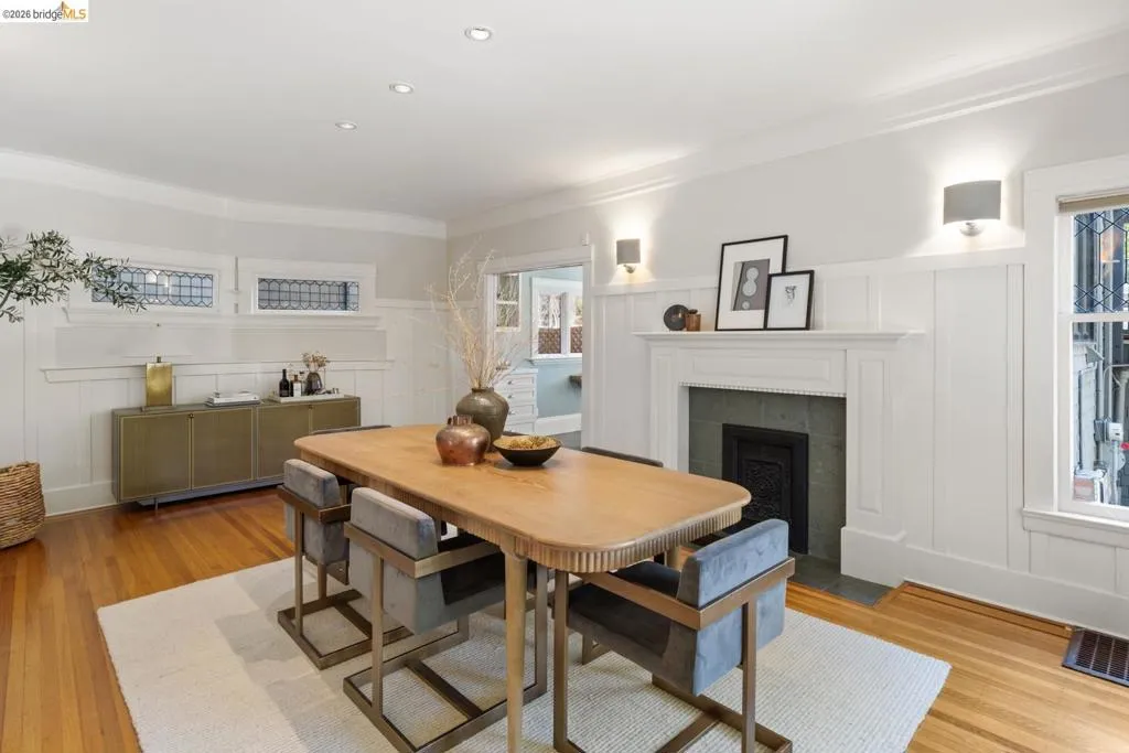Stately and iconic, this historic 5+BR/4BA Elmwood Edwardian occupies a coveted corner lot just blocks from College Avenue. Distinguished by elegant, rounded windows that flood the home with natural light, the residence blends timeless architectural beauty with sophisticated modern updates. A dramatic entry opens to a grand foyer with coat closet and powder room, leading to a gracious living room with high ceilings, gleaming hardwood floors, fireplace, and beveled glass windows. A formal dining room with oversized windows and original pocket doors sets the stage for memorable entertaining. The beautifully remodeled chef’s kitchen features Carrara marble counters, premium appliances, double ovens, an extra-tall refrigerator, abundant storage, and a generous eat-in area. Upstairs, a luxurious primary suite offers a walk-in closet and spa-like bath with steam shower and skylights. Two additional bedrooms, 1.5 baths, and a conveniently located laundry complete the level. A spacious family room or office with floor-to-ceiling windows opens to a deck for seamless indoor-outdoor flow. The top floor offers a flexible guest/exercise space with skylights and Bay glimpses. A separate guest suite with full bath and private garden entry provides ideal accommodations. Surrounded by mature gardens and featuring extensive system upgrades, including newer foundation, electrical, and plumbing, this exceptional home offers timeless elegance in one of Berkeley’s most sought-after neighborhoods just moments to shops, dining, trails, and commute options. Elmwood living at its finest! BESO Score 2