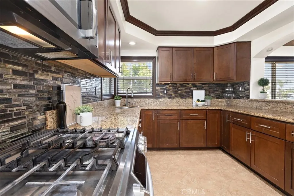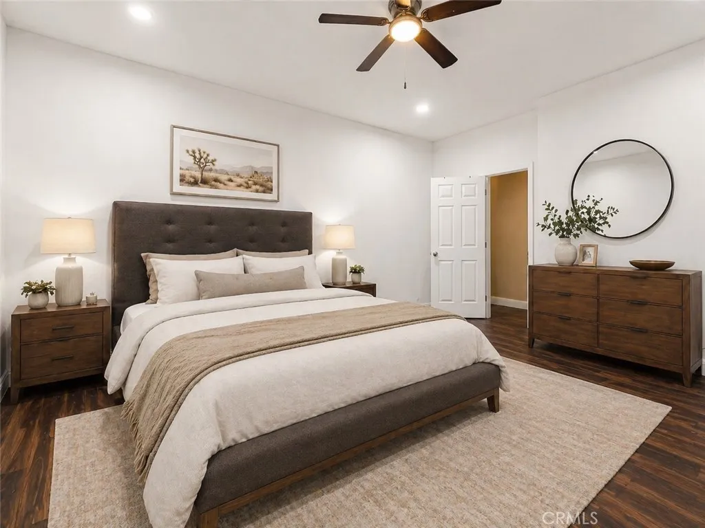 Welcome to 6112 Maloof Ave, Fontana — a rare opportunity to own a versatile single-story property on an expansive 15,690 sq ft corner lot with mountain views, RV access, and exceptional flexibility. The main residence is approximately 1,914 sq ft , which features a large step-down primary bedroom, 2 additional bedrooms, and 2 bathrooms. In addition, a former detached 3-car garage has been converted into a 689 sq ft 1-bedroom, 1-bath apartment with kitchen and a separate 366 sq ft studio with 1 bath, offering a unique setup for multigenerational living, guests, workspace, or possible supplemental income. From the moment you arrive, the property stands out with its broad frontage, oversized driveway, and RV access via large side gates leading to the rear and side yards. Inside, the main home offers a warm and polished feel with rich wood-style flooring, crown molding, recessed lighting, an open dining and living layout, and a striking fireplace that anchors the heart of the home. The kitchen is beautifully finished with granite countertops, stainless steel appliances, abundant cabinetry, and breakfast bar seating, blending style and function for everyday living and entertaining. The backyard is designed for gathering and enjoyment with extensive hardscape, a large covered patio, built-in outdoor kitchen and bar, artificial turf, and a sleek fire feature with built-in seating that creates a private resort-style setting. With the spacious main home, converted apartment, and separate studio, this property delivers a rare combination of comfort, flexibility, and lifestyle. Conveniently located near the 210 and 15 freeways, Summit High School, and the Sierra Lakes shopping corridor. Buyer to verify square footage, permits, and current use.