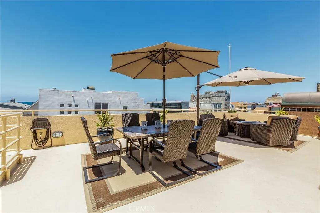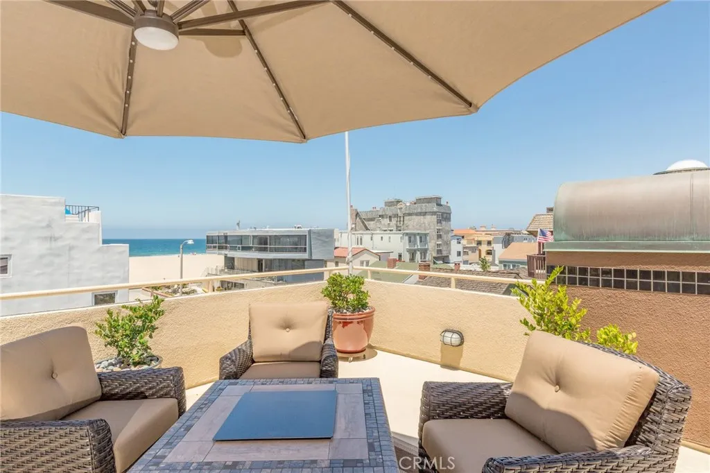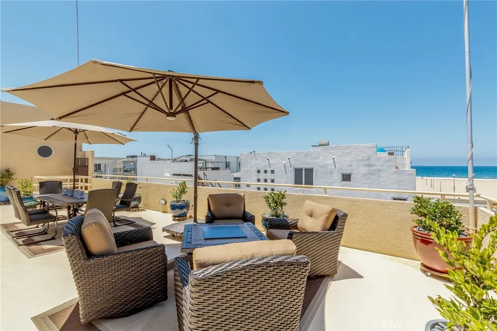 FURNISHED townhome on a walk street, steps to the beach and the world famous Strand. Set along one of Hermosa Beach’s coveted walk streets just three homes from the sand. This 2-bedroom, 3-bath residence with an additional office area offers a rare opportunity to enjoy ocean views and beach proximity in one of the South Bay’s most desirable locations. The living area is both sophisticated and inviting, featuring a fireplace, large flat-screen TV, plush oversized sofa, and designer accent chairs—perfect for relaxing or entertaining. Adjacent, the dining area comfortably accommodates eight guests, creating an ideal setting for everything from casual family dinners to elegant gatherings. A small patio with lounge seating extends off the living room, offering a perfect spot for relaxing. The chef’s kitchen is equally impressive, boasting stainless steel appliances, expansive granite countertops, abundant cabinetry, and a charming breakfast nook with additional seating. Whether preparing a quick morning coffee or hosting a full dinner party, this kitchen offers both functionality and style for the culinary enthusiast. Expansive rooftop deck—approximately 1,000 square feet of prime outdoor living space with breathtaking panoramic views. From Catalina Island to the Palos Verdes Peninsula and across Santa Monica Bay, the vistas are nothing short of spectacular. Designed for entertaining, the deck includes a large dining table, lounge seating areas, umbrellas, a fire pit, and a BBQ. The primary suite, conveniently located on the first floor, offers a private retreat complete with its own outdoor patio with a table and chairs. Inside is a spacious en-suite bathroom featuring a large vanity, walk-in shower, and 2 generous closet spaces. The second bedroom is also located on this level and includes its own private bathroom, making it ideal for guests or family members seeking comfort and privacy. A versatile den/office space provides additional flexibility and includes a trundle bed, perfect for accommodating overnight visitors or creating a work-from-home environment. Additional highlights include an in-unit washer and dryer, a tandem garage with an extra exterior parking space, and a pet-friendly policy (please submit for approval). Just a short stroll to downtown Hermosa Beach’s vibrant shops, restaurants, and nightlife, while also offering quick access to the Redondo Beach Marina and an array of beach and water activities. Utilities are not included.